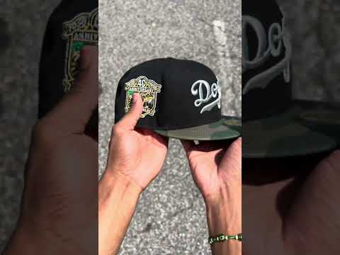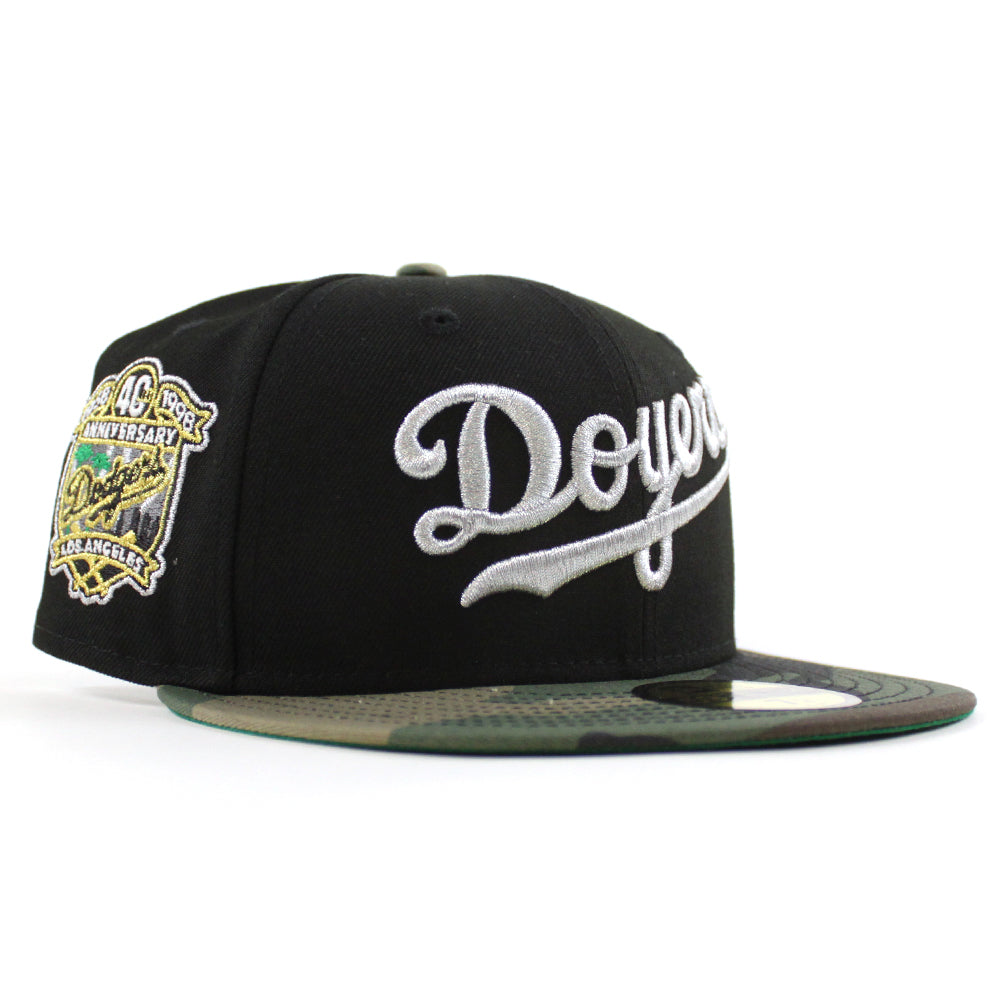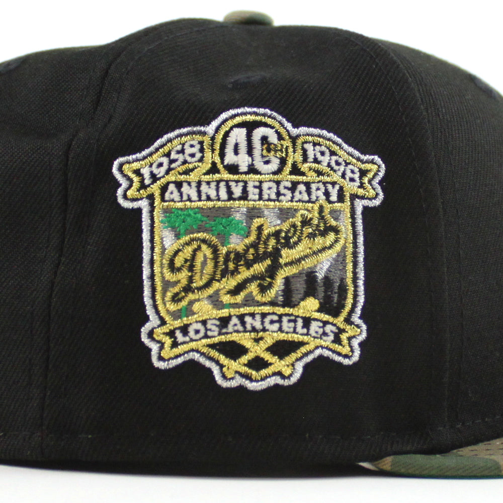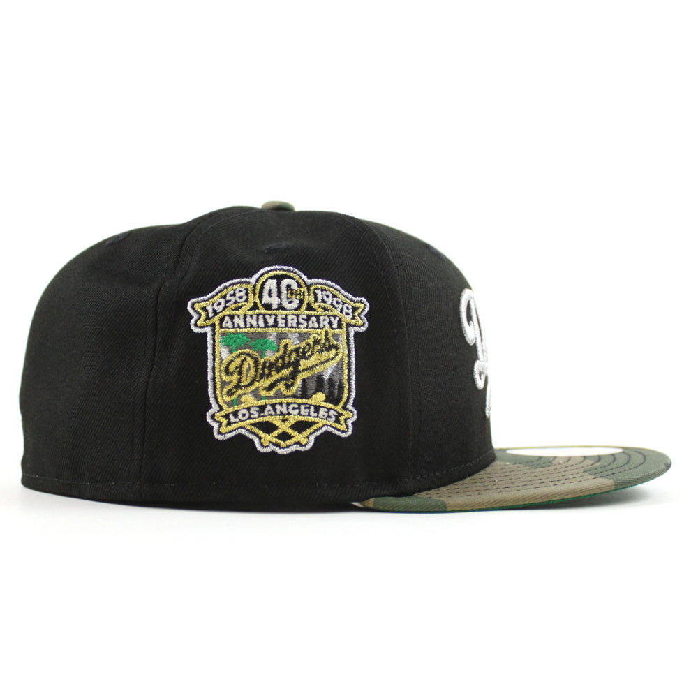 Los Angeles Dodgers 40th Anniversary New Era 59Fifty Fitted Hat in Black, WoodLand Camo and Green Under Brim.