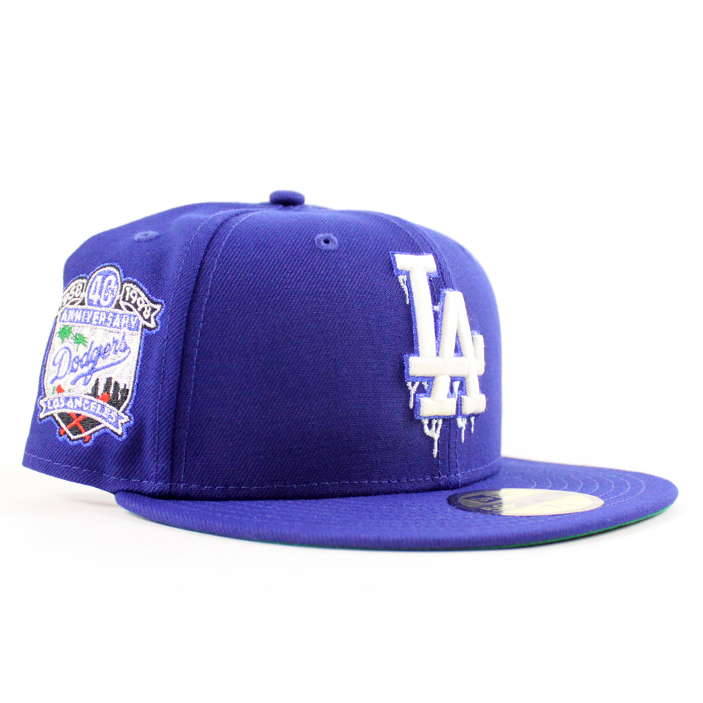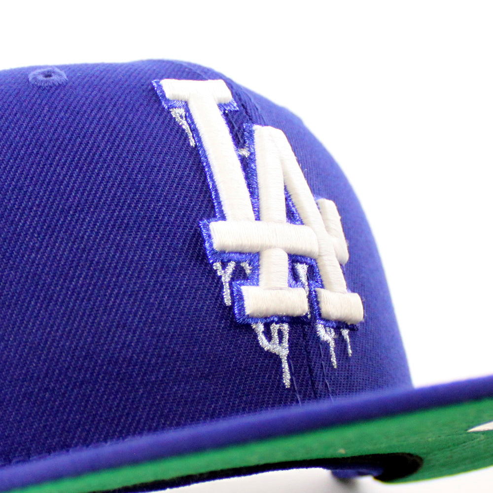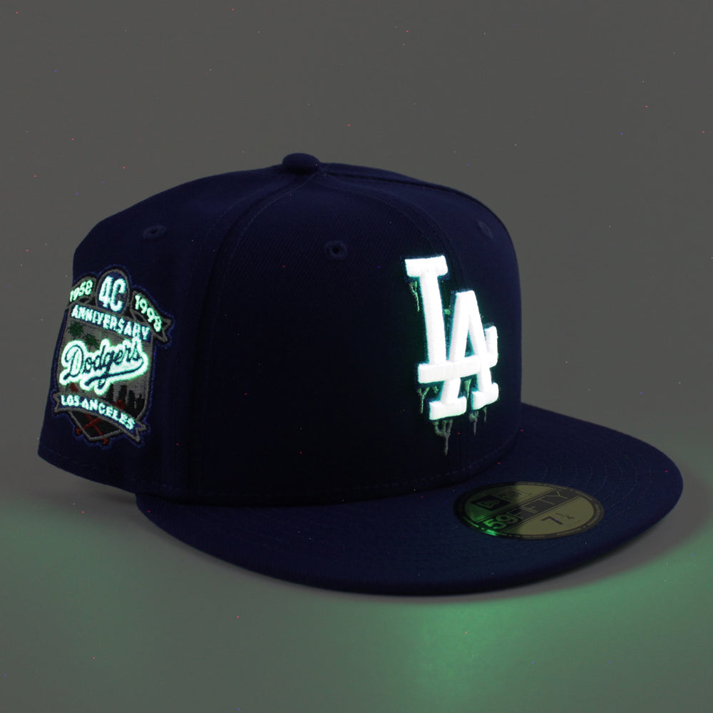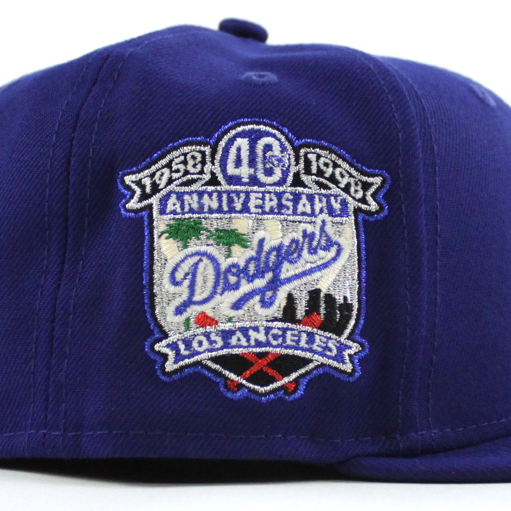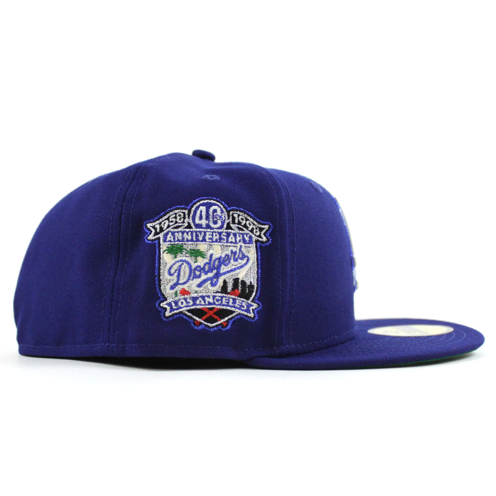 Los Angeles Dodgers I Bleed Dodger Blue 40th Anniversary New Era 59Fifty Fitted Hat in Royal Blue and Green Under Brim.