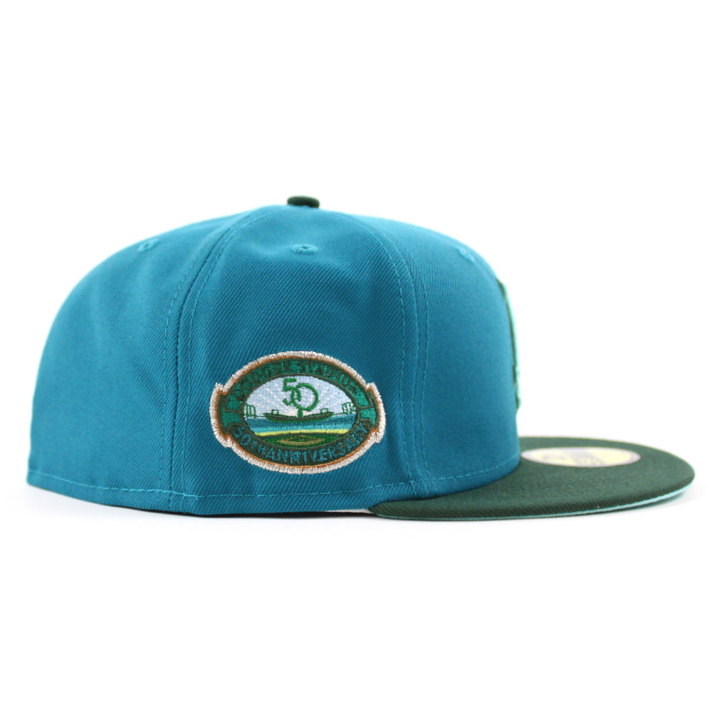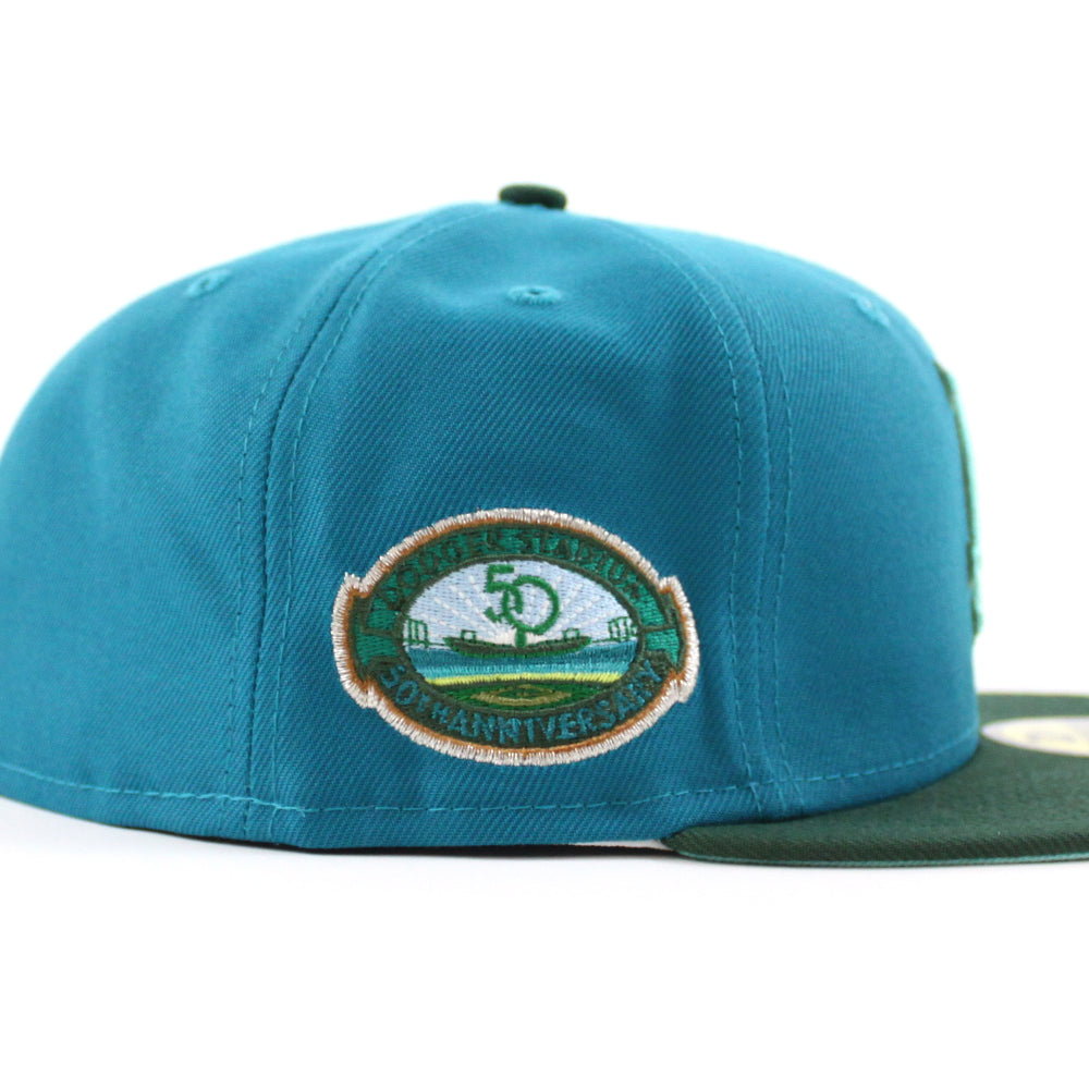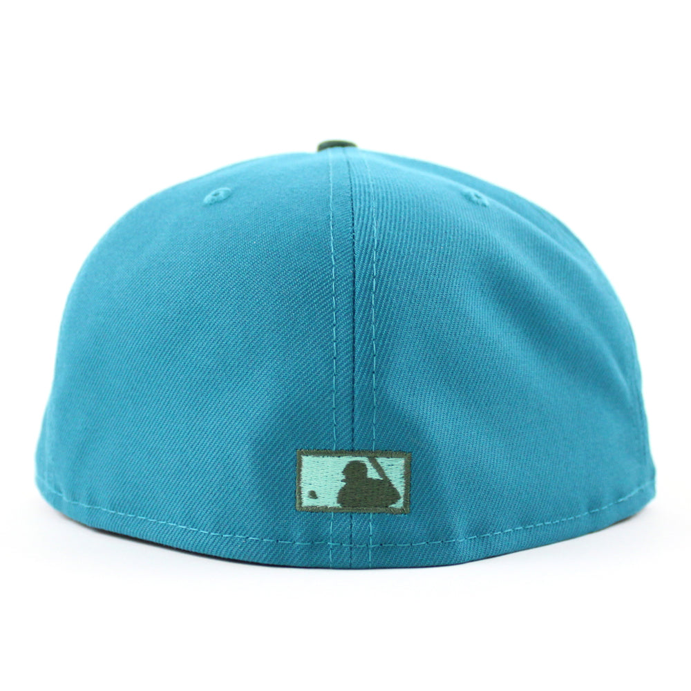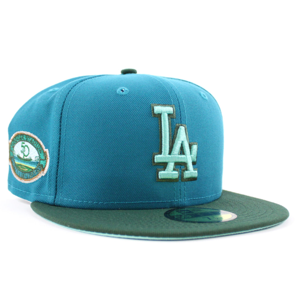 Los Angeles Dodgers 50th Anniversary New Era 59Fifty Fitted Hat in Teal, Olive & Mint Under Brim.
