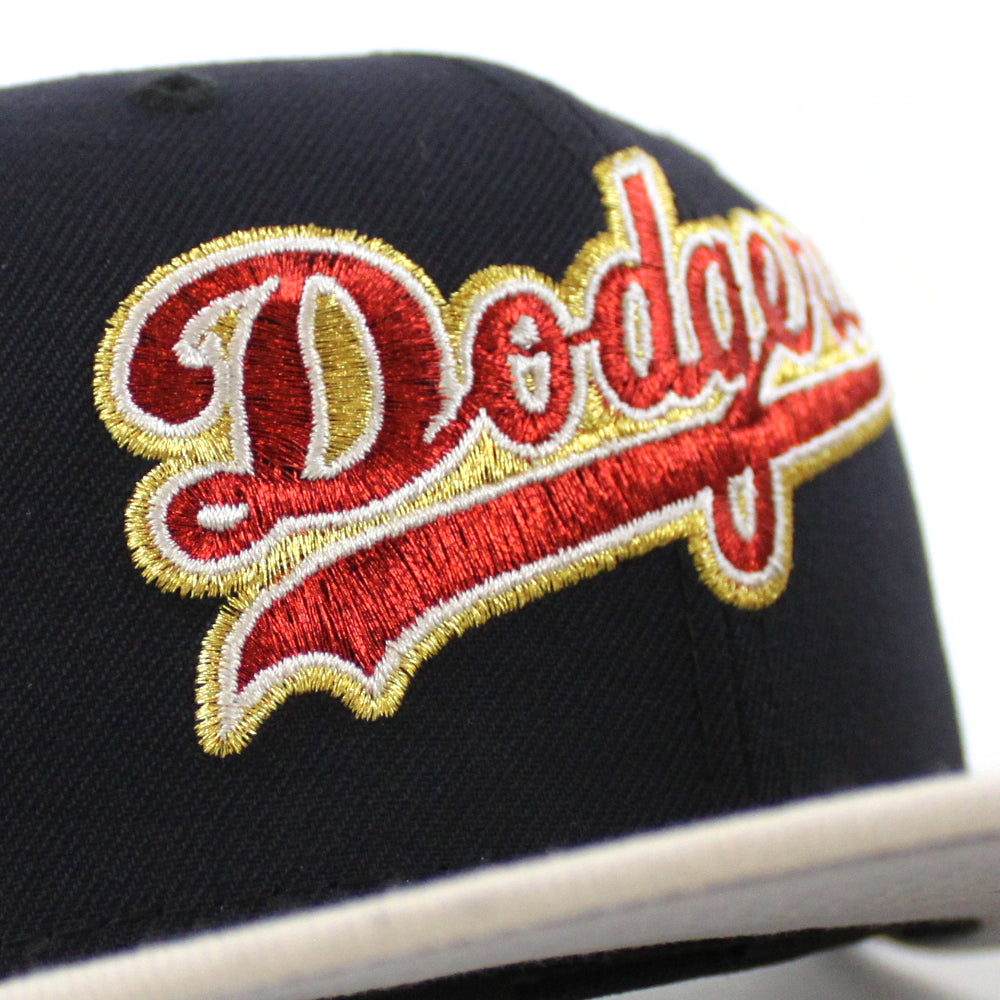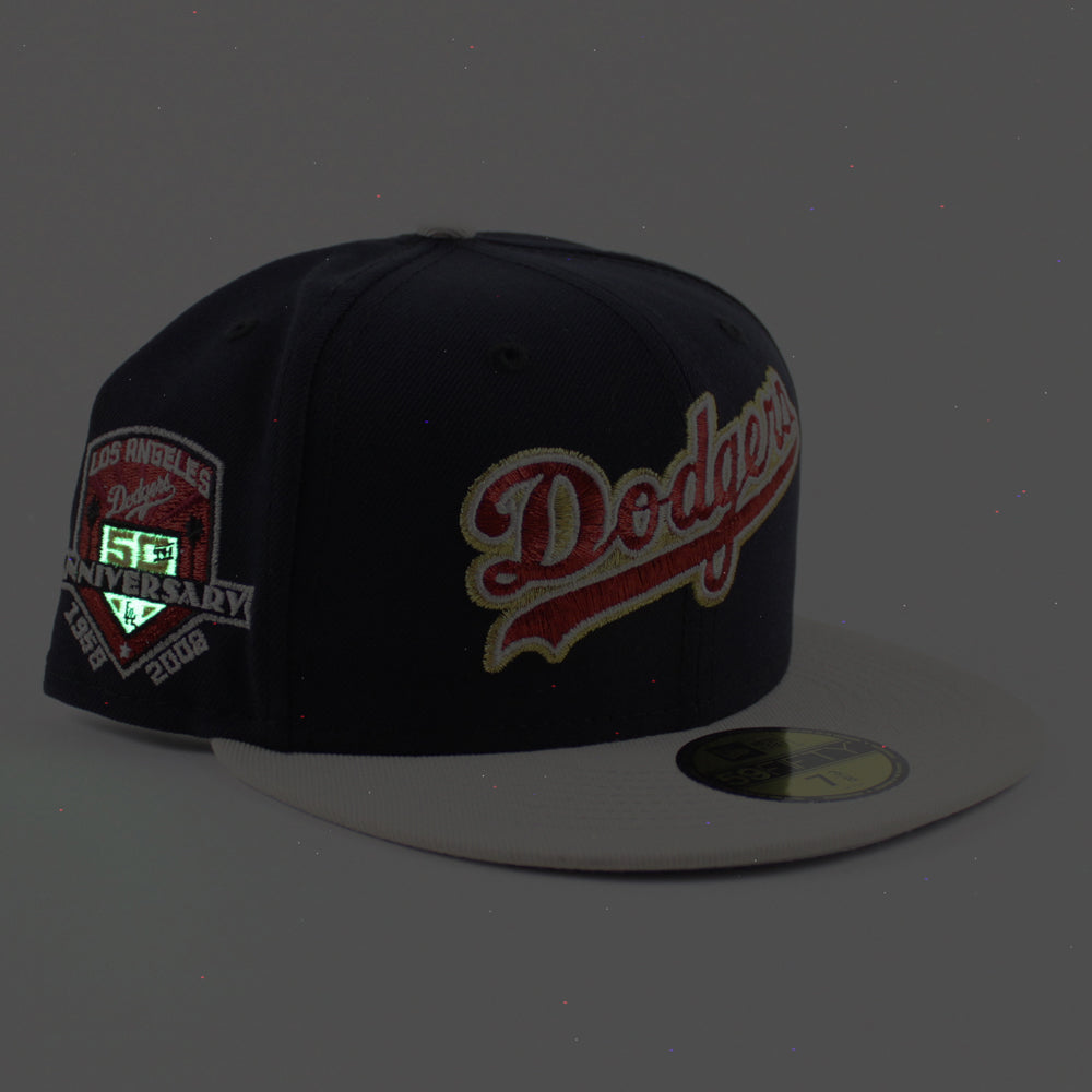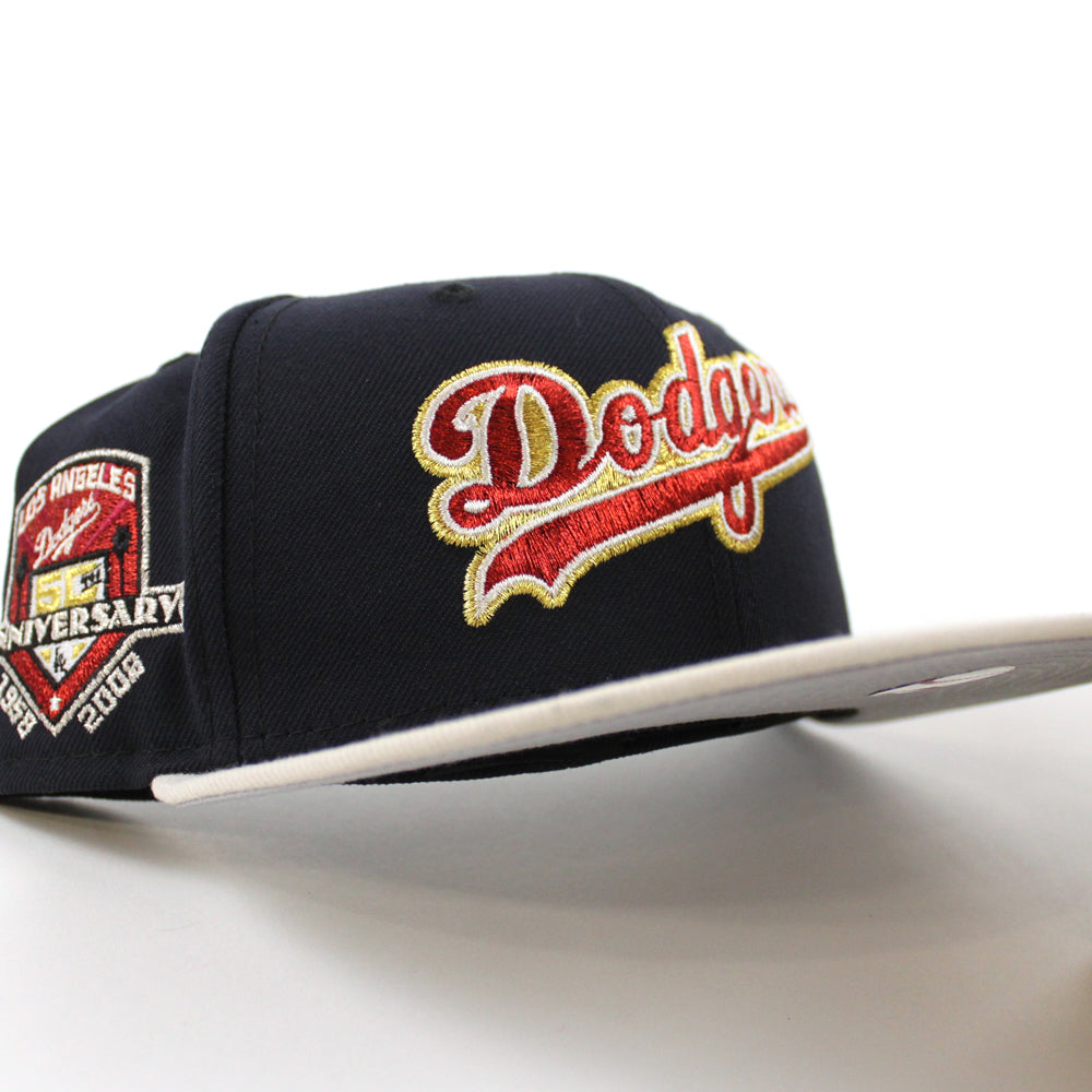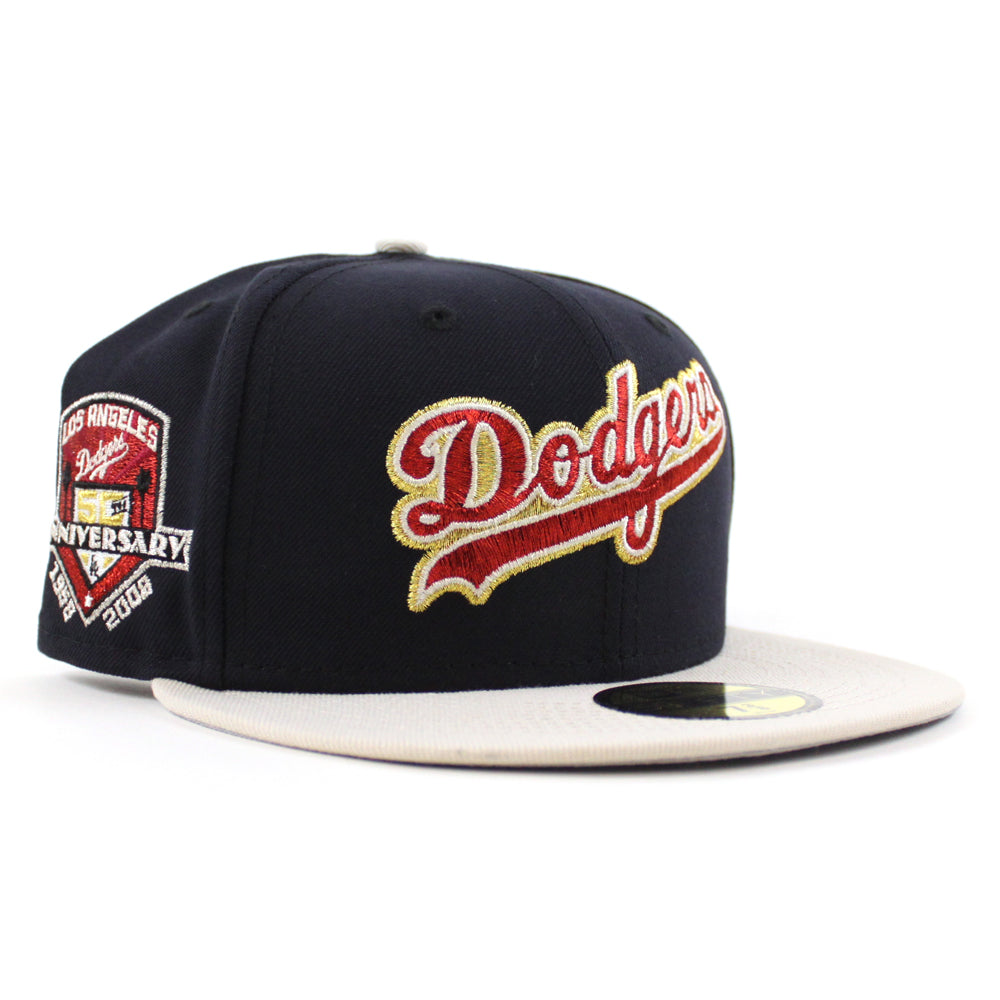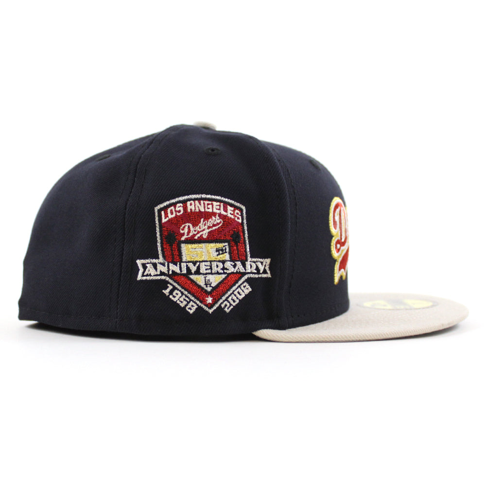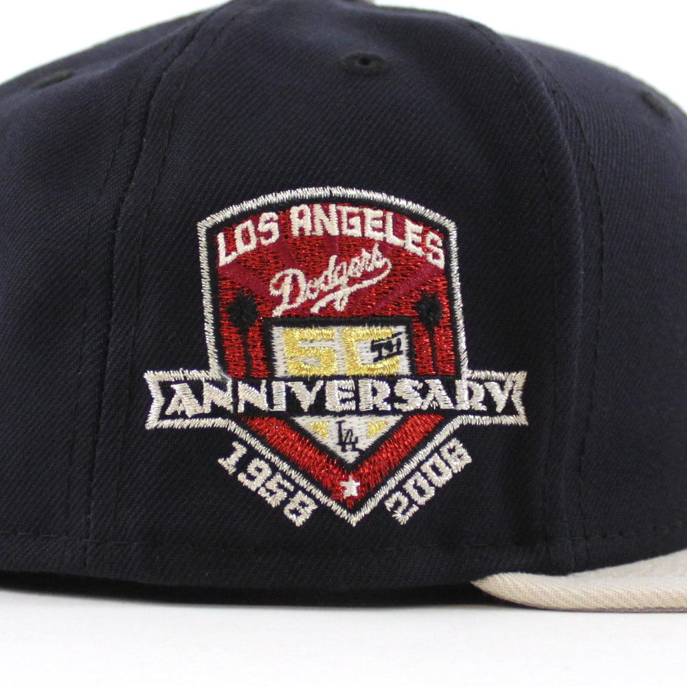 Los Angeles Dodgers 50th Anniversary DODGERS STADIUM New Era 59Fifty Fitted Hat in Navy, Stone and Gray Under Brim.