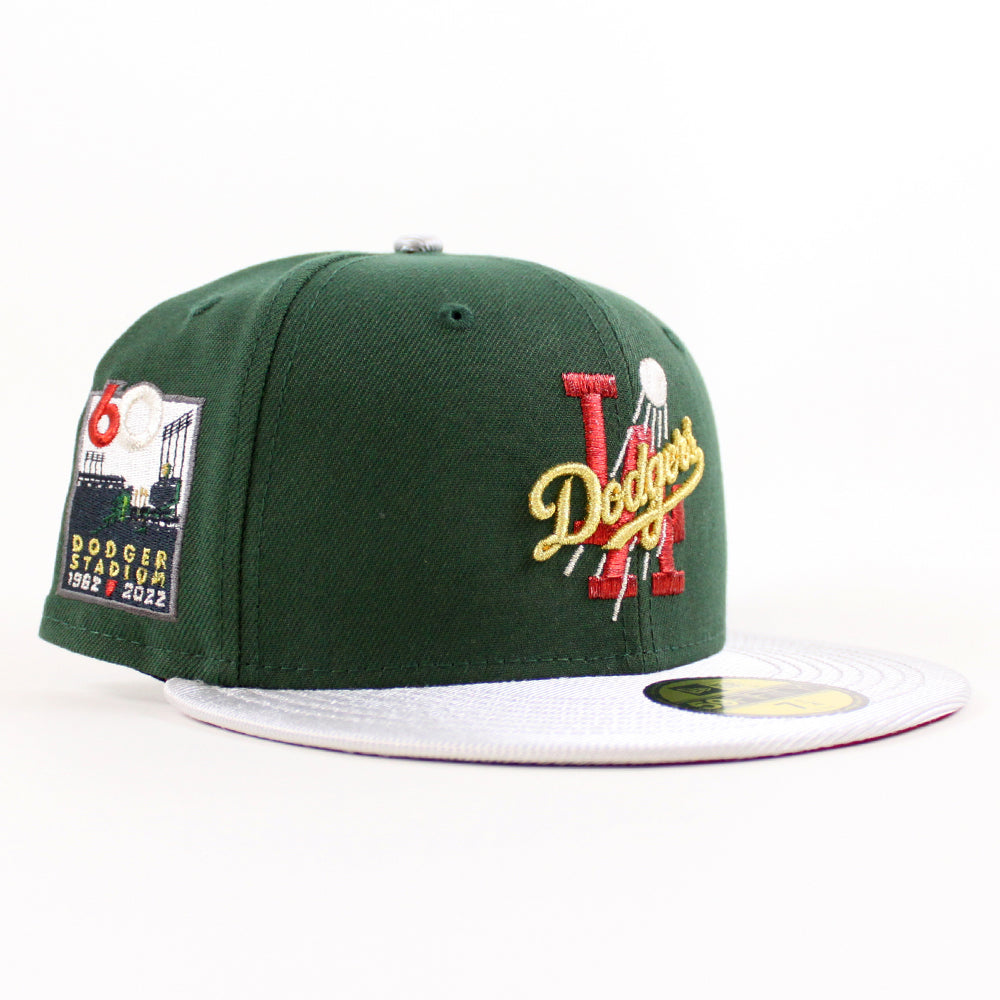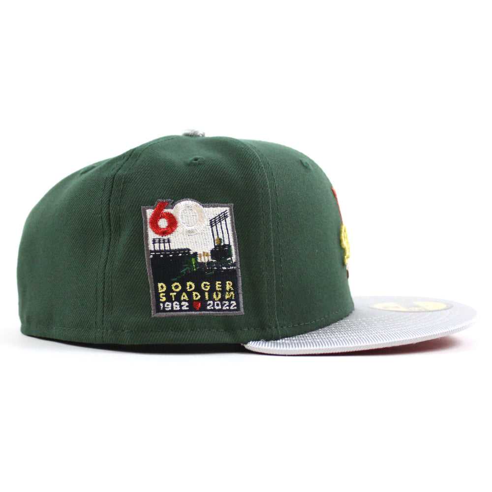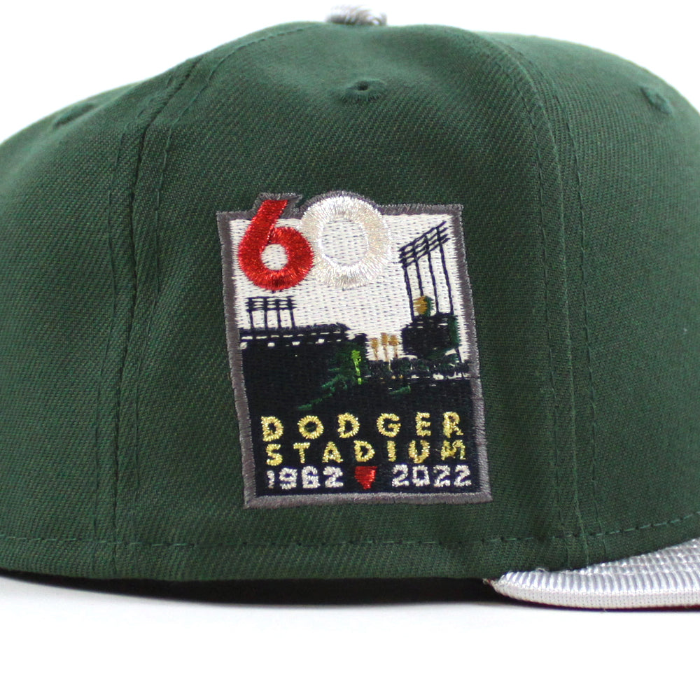 Los Angeles Dodgers 60th Anniversary New Era 59Fifty Fitted Hat in Cilantro Green, Silver and Scarlet Red Under Brim.