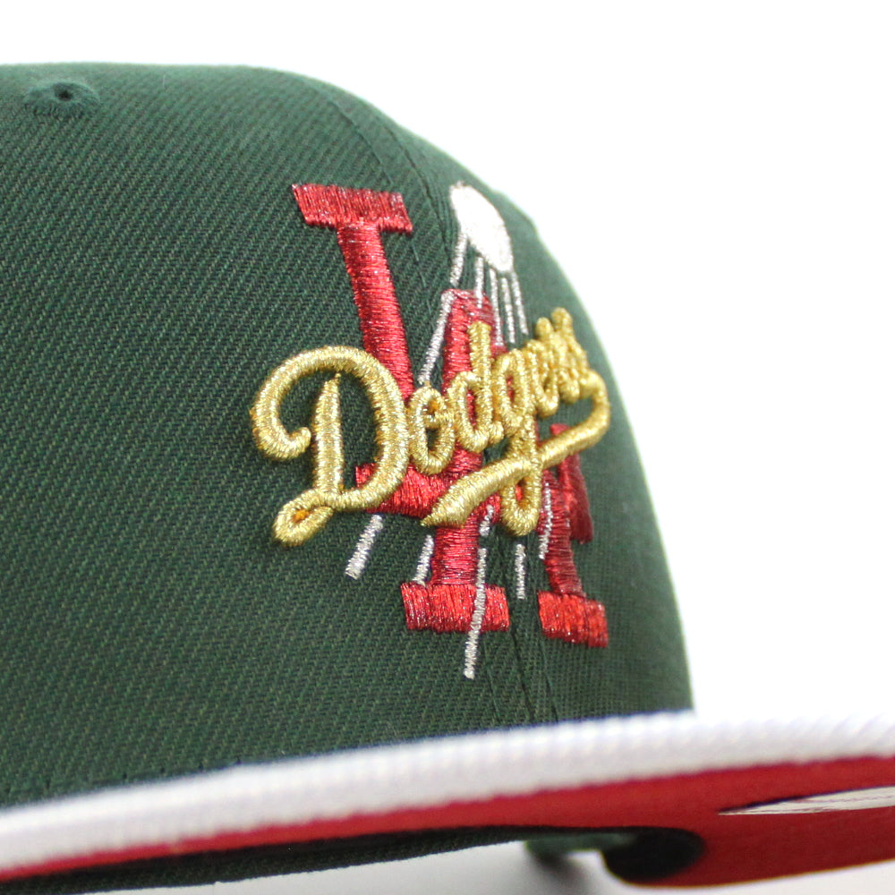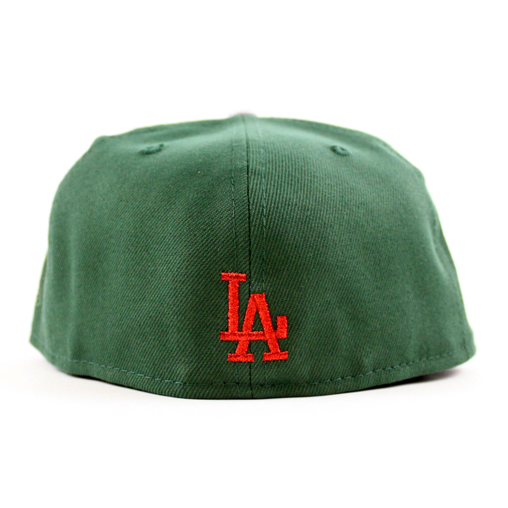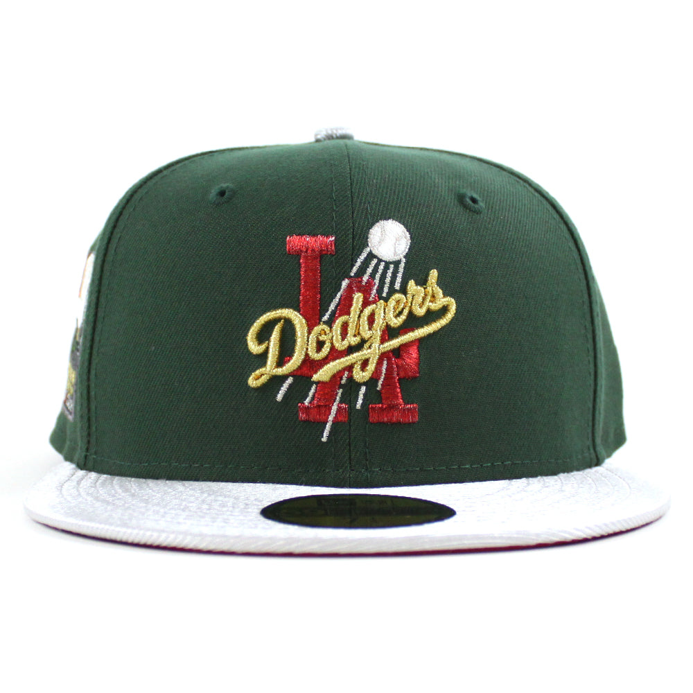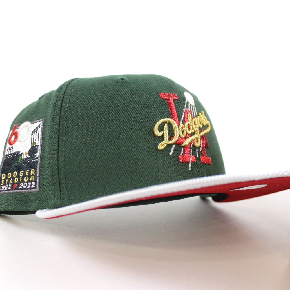 Los Angeles Dodgers 60th Anniversary New Era 59Fifty Fitted Hat in Cilantro Green, Silver and Scarlet Red Under Brim.