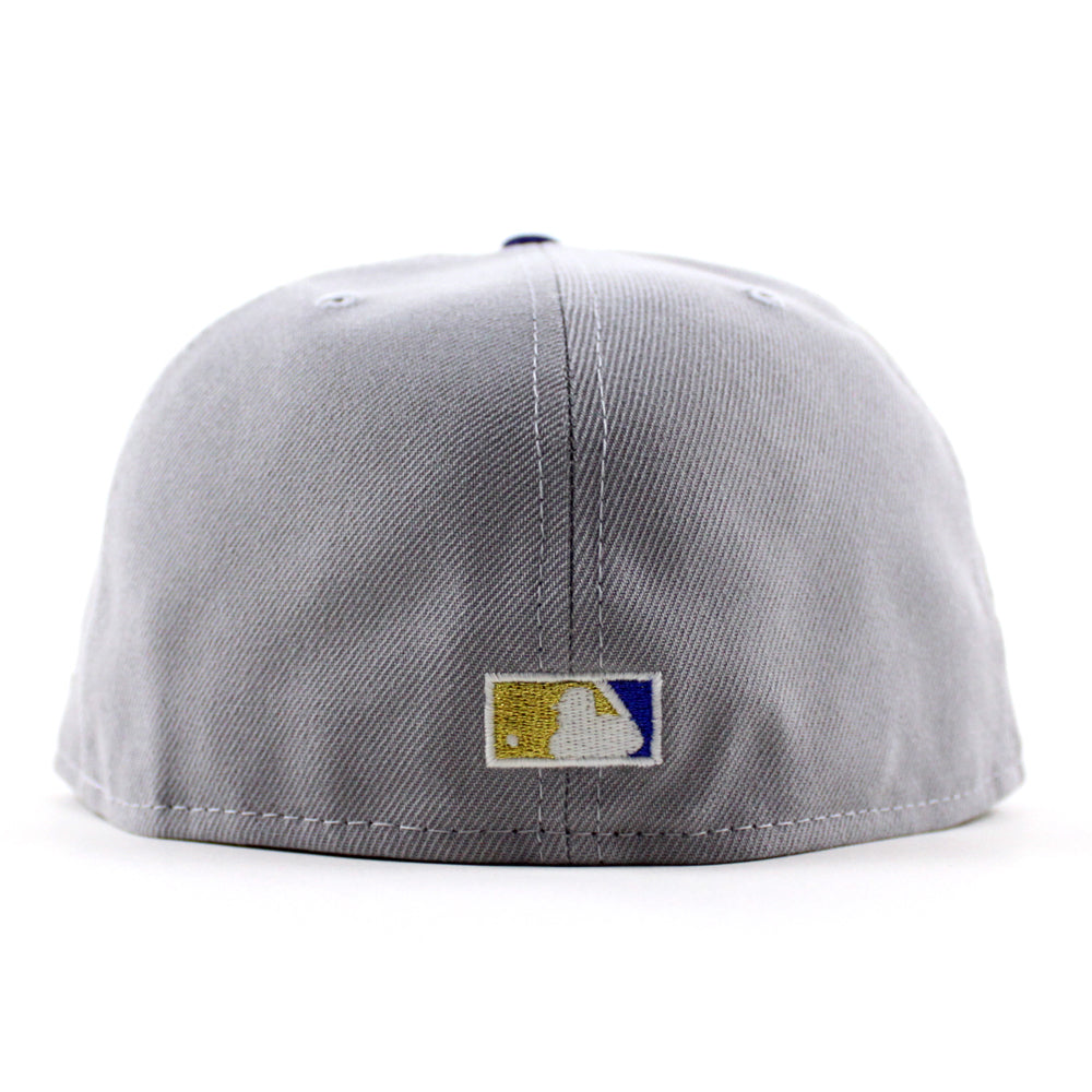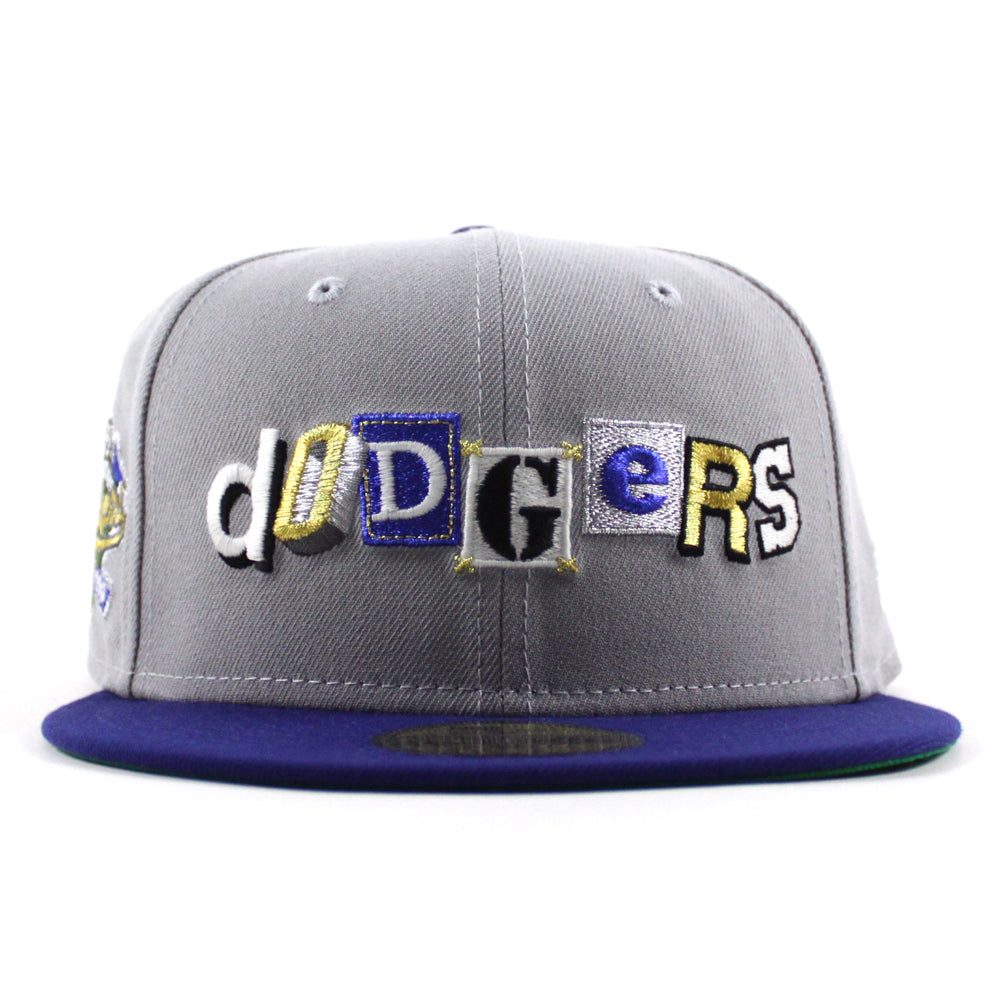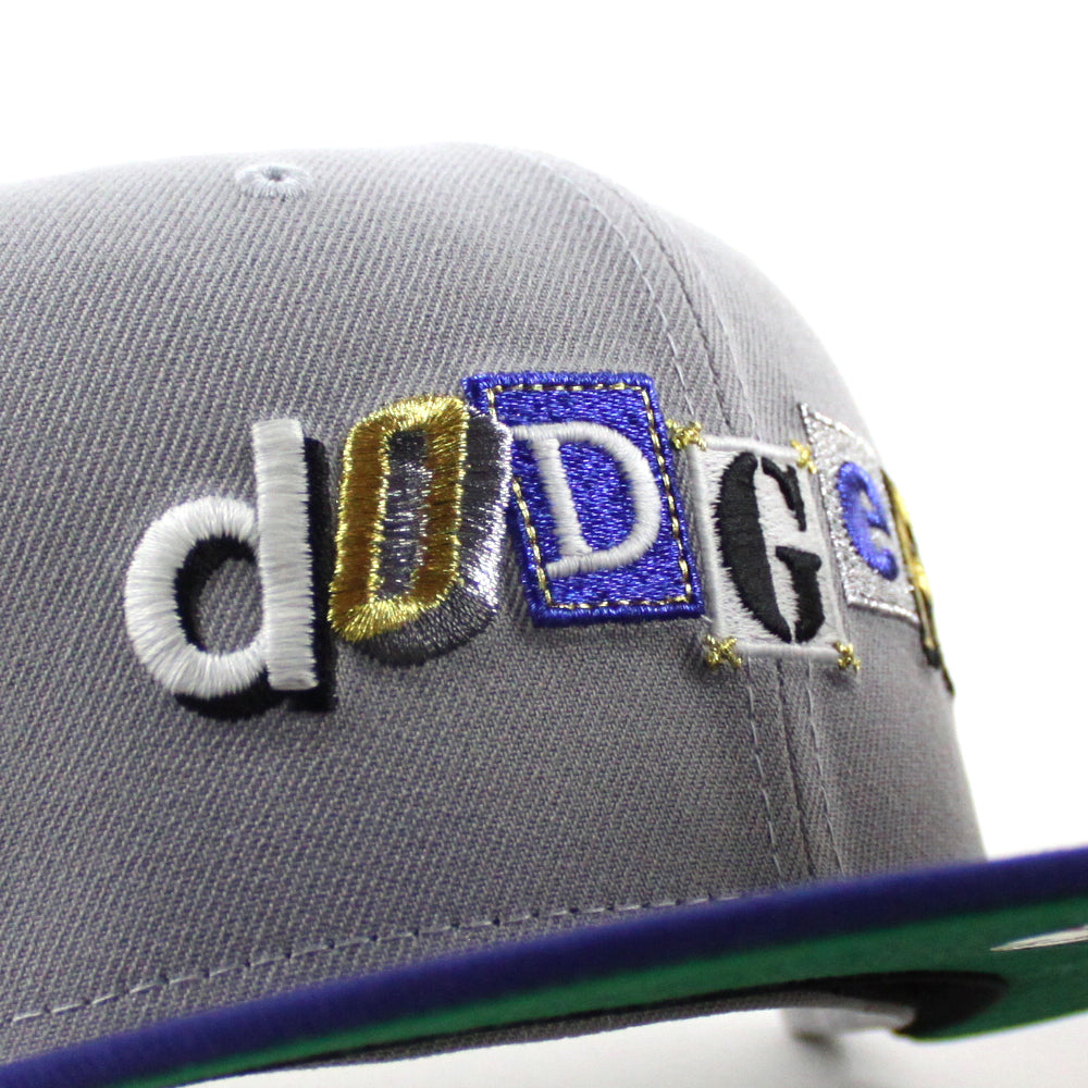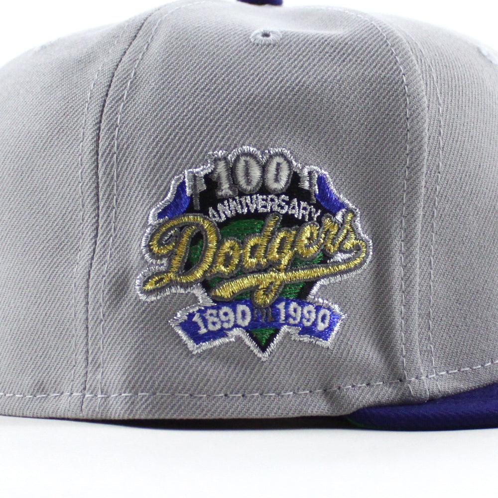 Los Angeles Dodgers Death Note 100 Years Patch New Era 59Fifty Fitted Hat in Gray, Royal Blue and Green Under Brim.