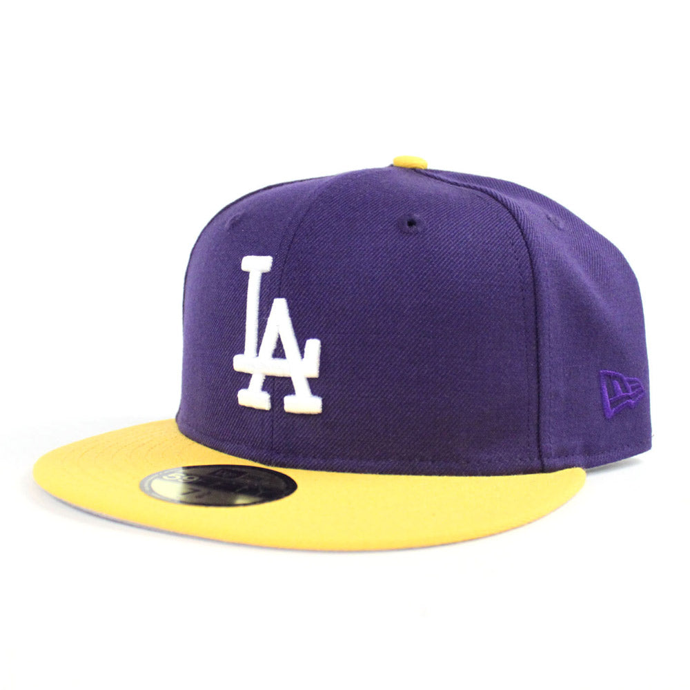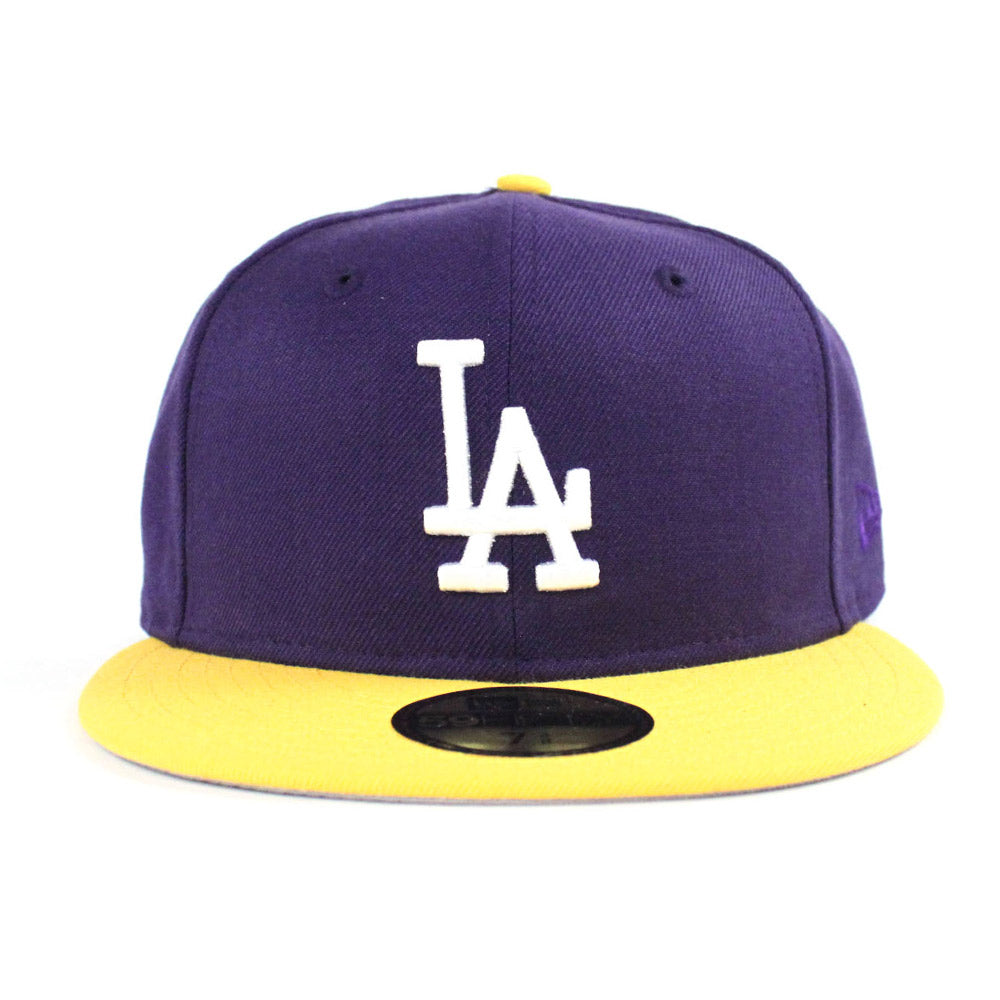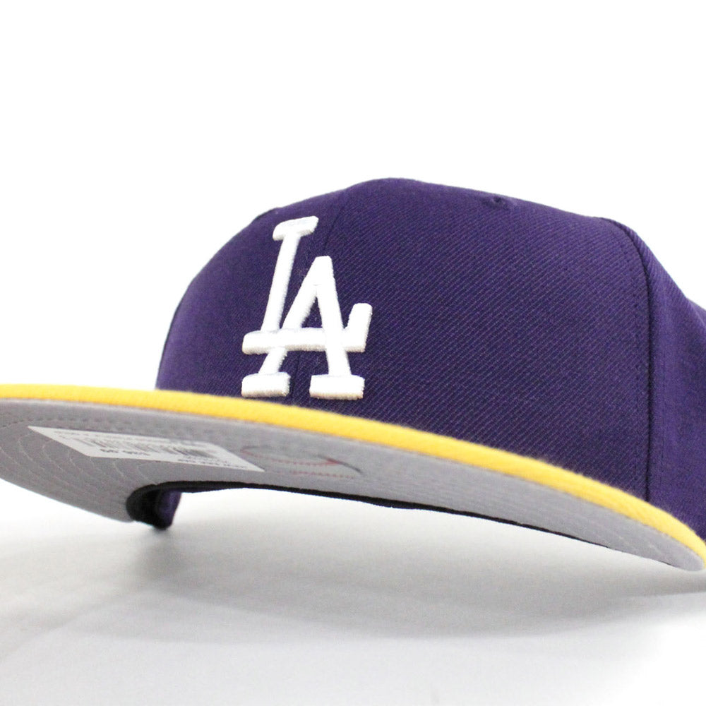 Los Angeles Dodgers New Era 59Fifty Fitted Hat Purple, Yellow and gray under brim. LA Lakers Color way.