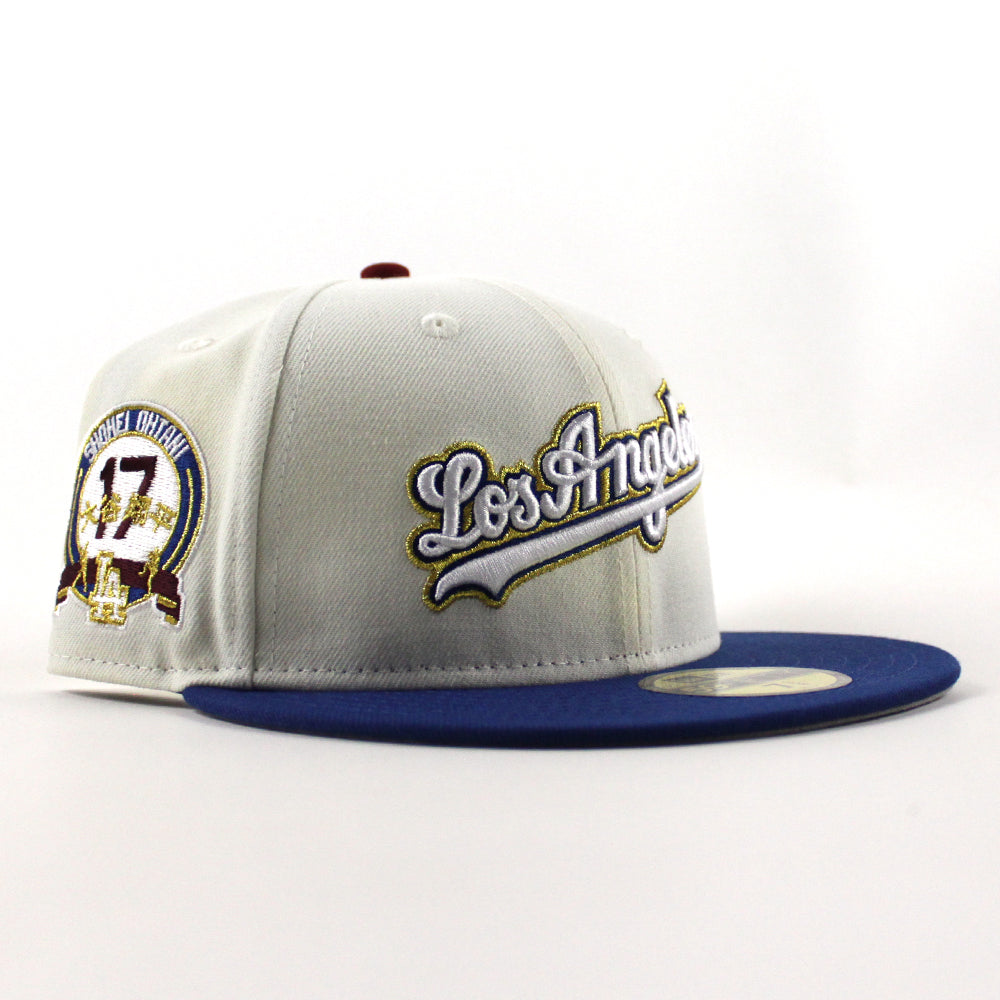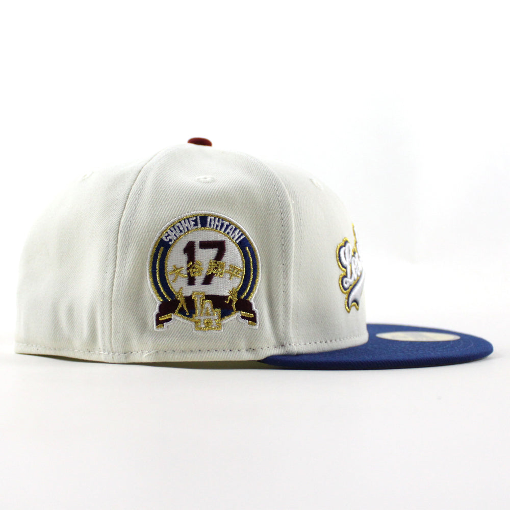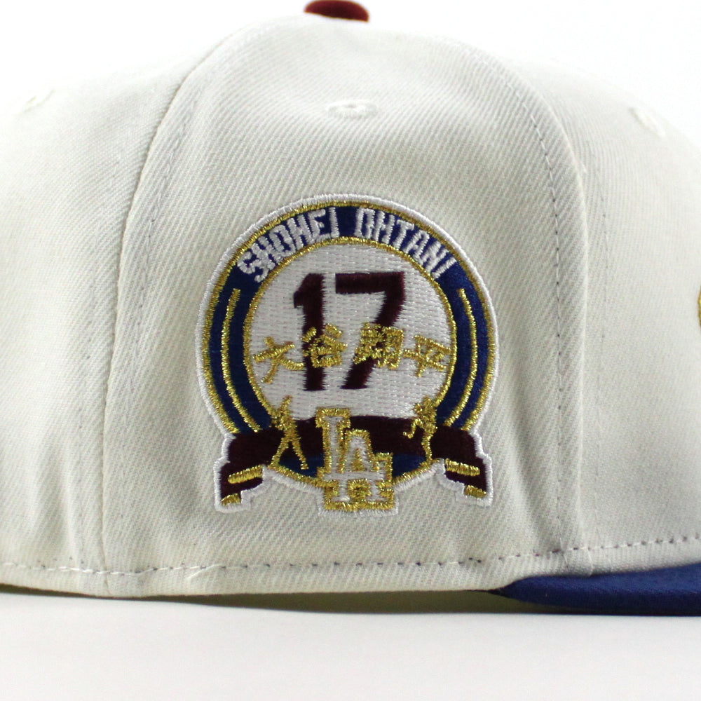 Los Angeles dodgers Ohtani (大谷翔平) 17 Patch New Era 59Fifty Fitted Hat (Chrome White Song Bird Blue Gray Under Brim)