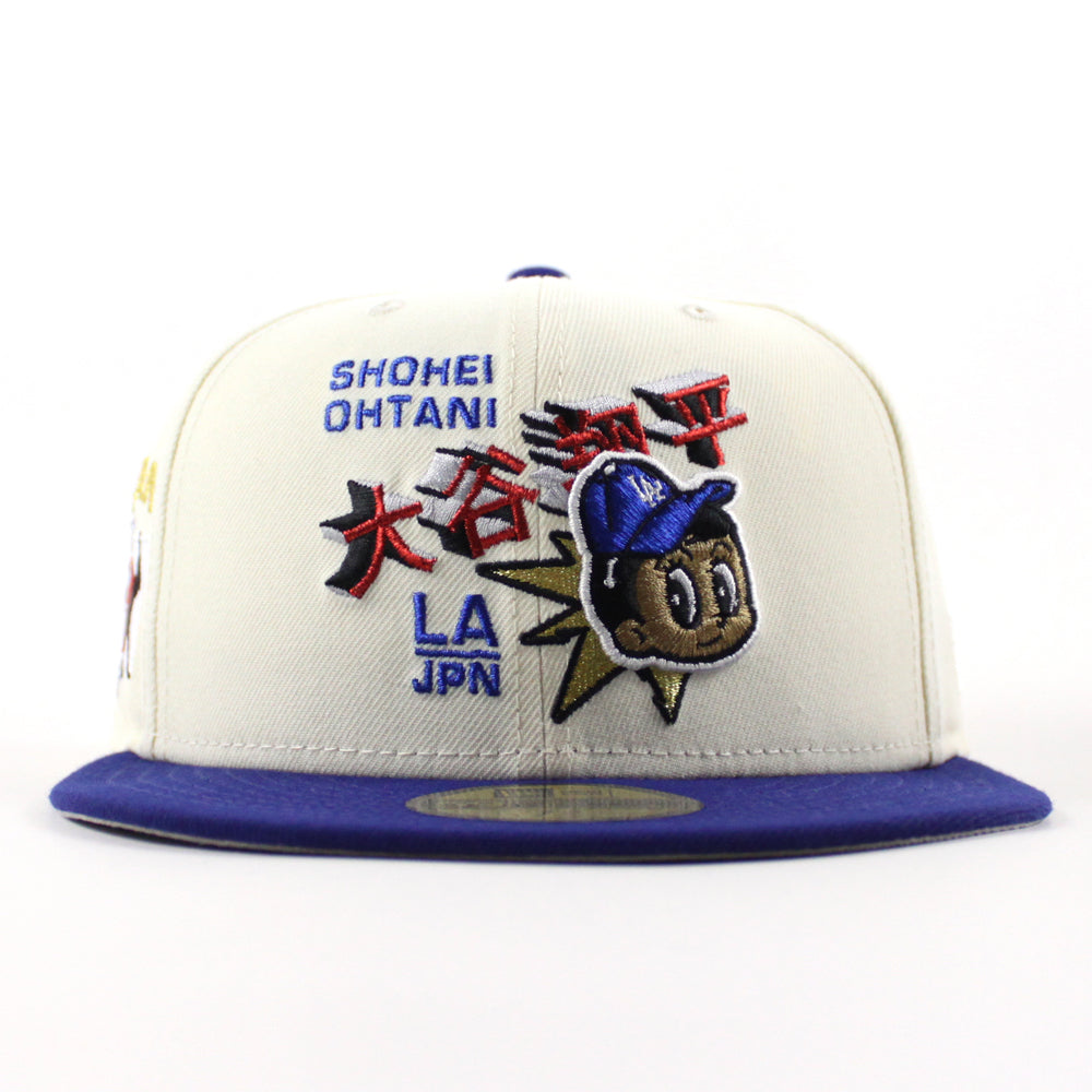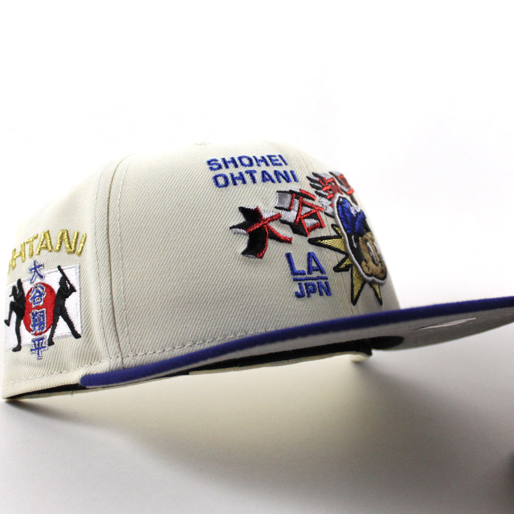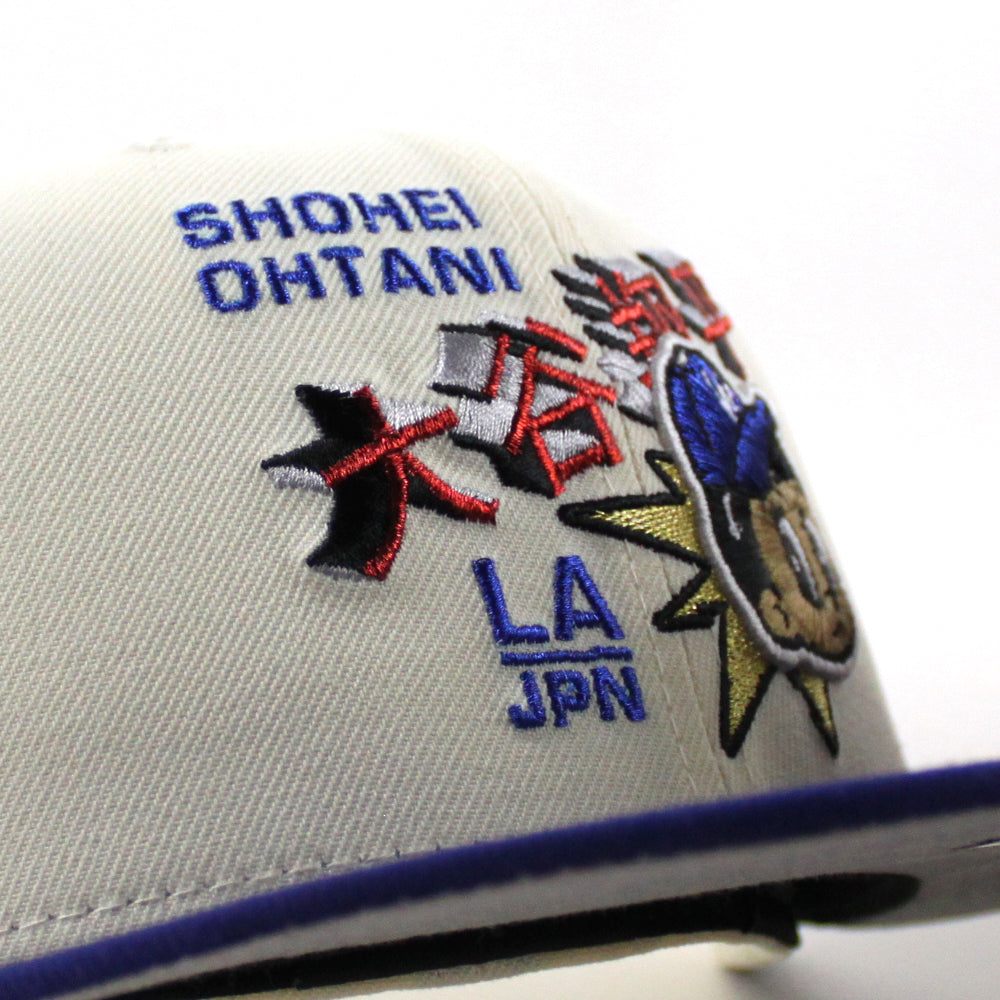 Shohei Ohtani Los Angeles dodgers Ohtani Patch New Era 59Fifty Fitted Hat (Chrome White Royal Blue Gray Under Brim)