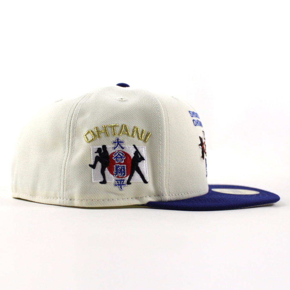 Shohei Ohtani (大谷翔平) LA Dodgers Ohtani Patch New Era 59Fifty Fitted Hat in Chrome White Royal Blue and Gray Under Brim.