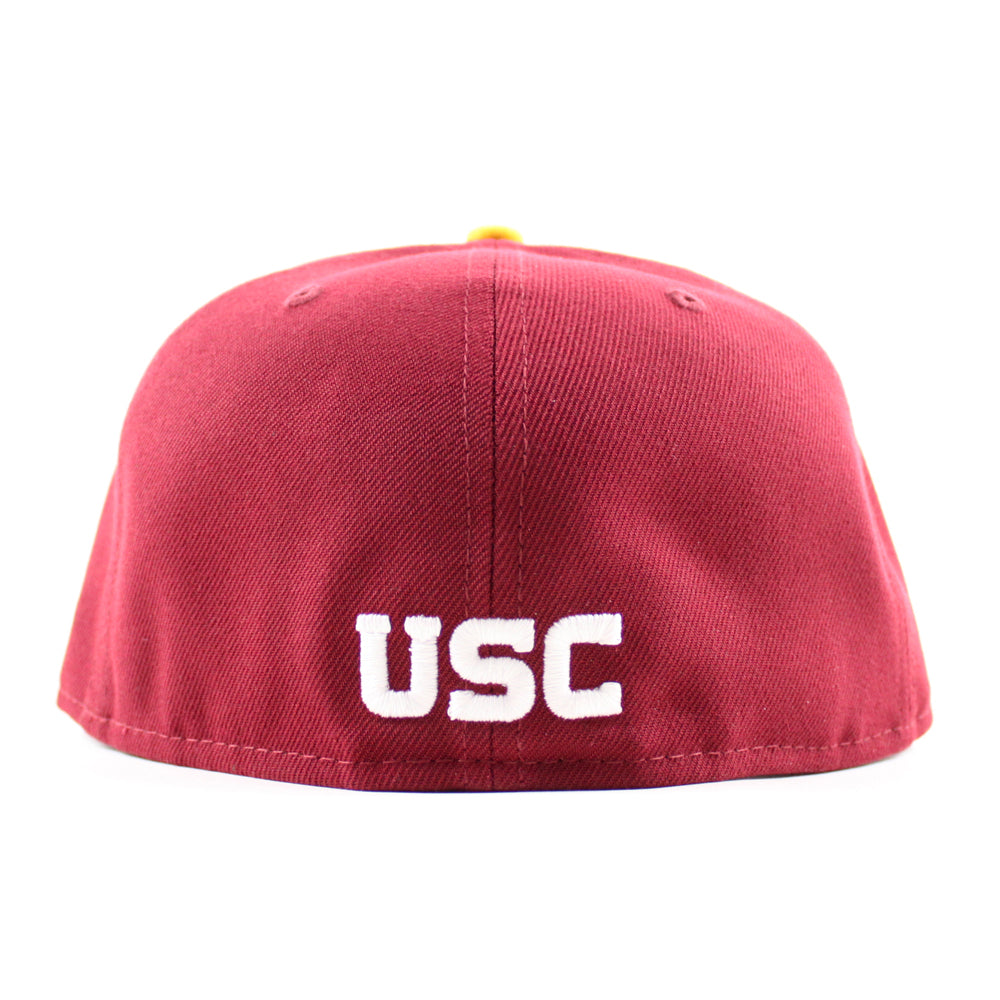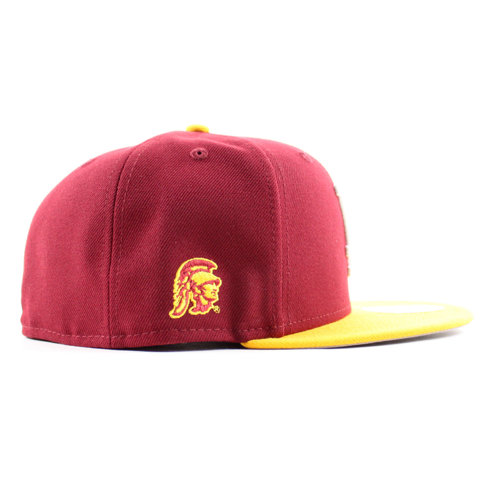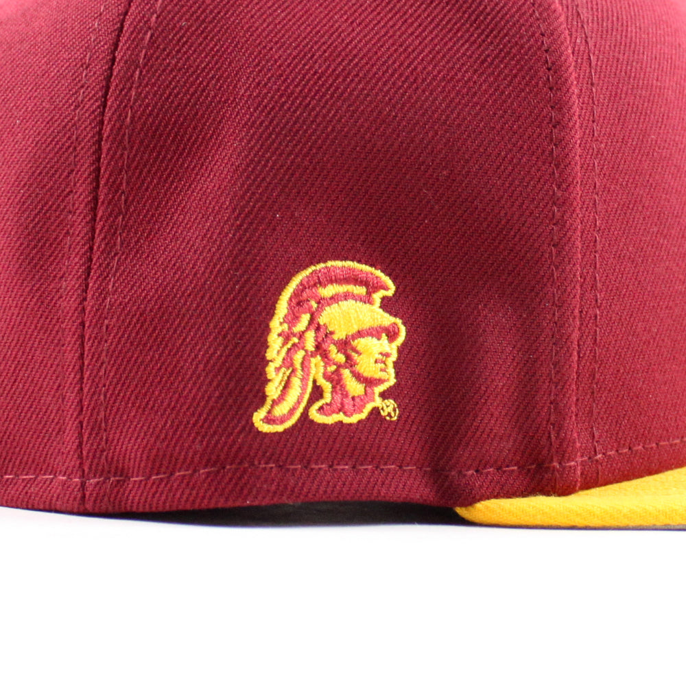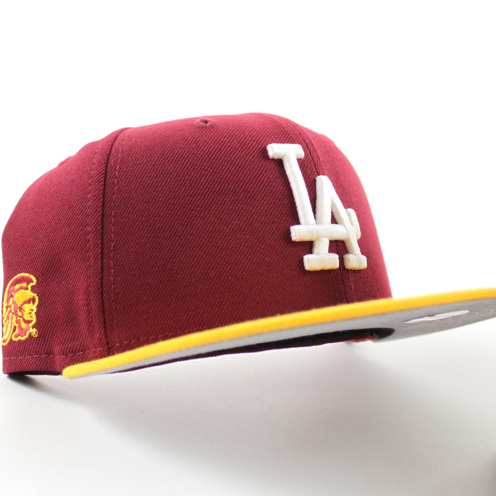 USC x Los Angeles Dodgers New Era 59Fifty Fitted Hat in Cardinal, Yellow and Gray Under Brim.