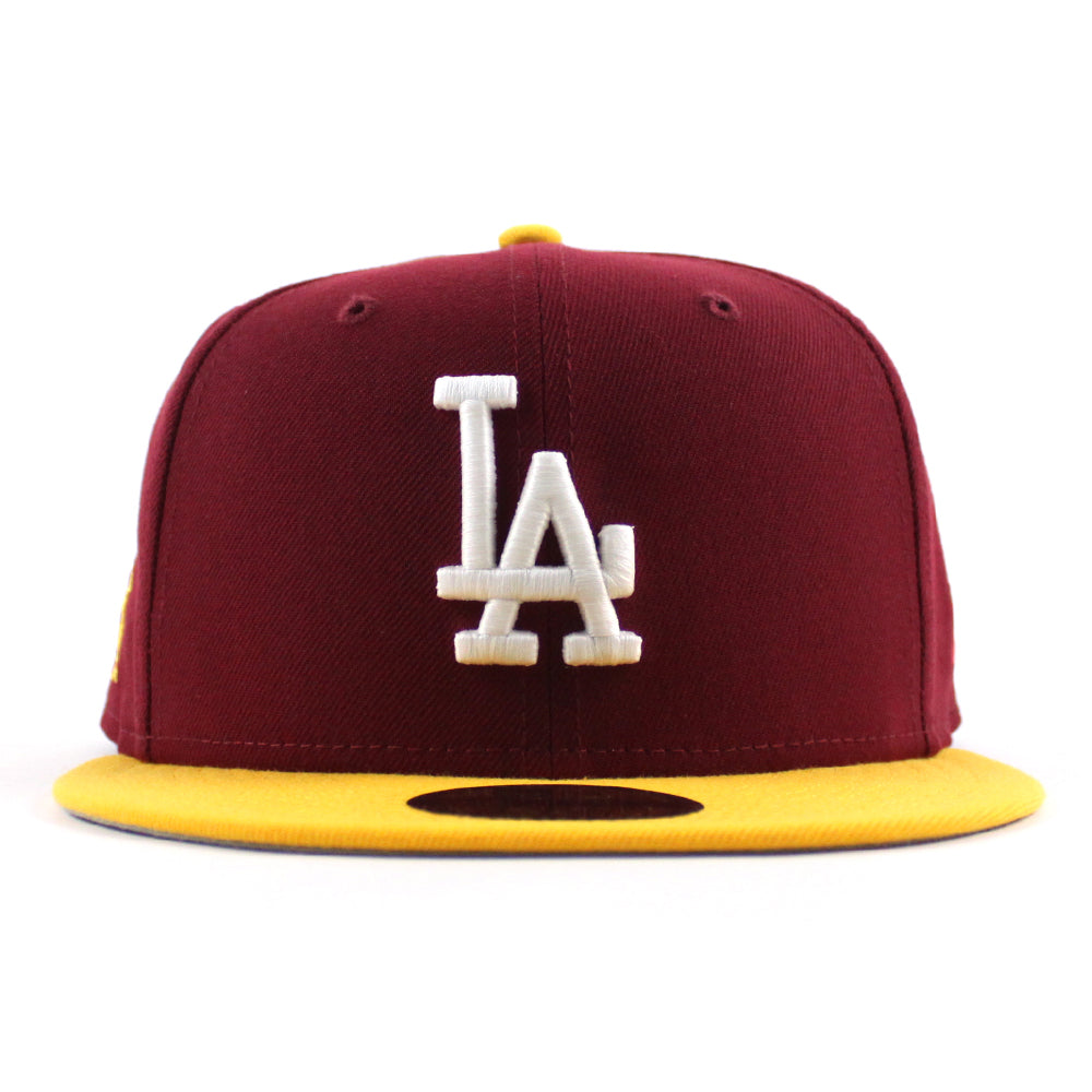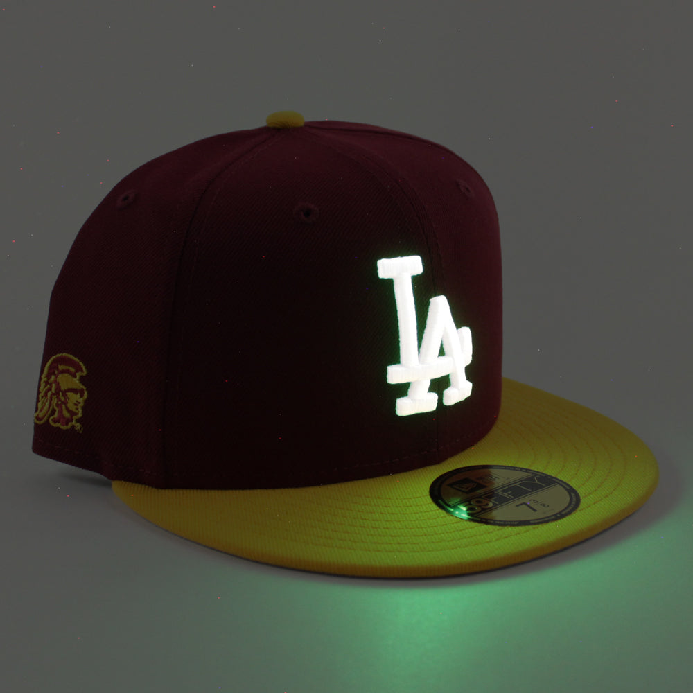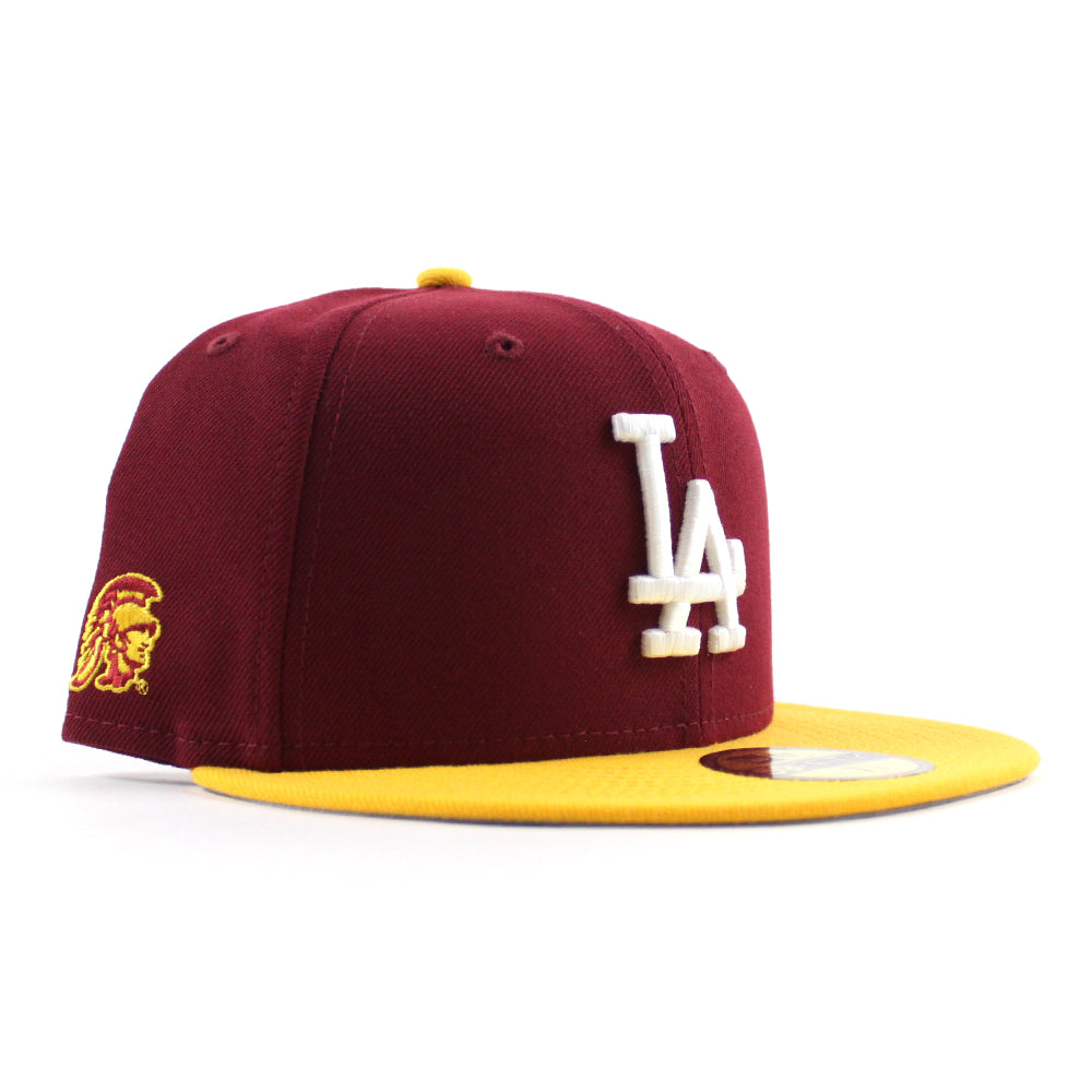 Los Angeles Dodgers x University of Southern California New Era 59Fifty Fitted Hat (Cardinal Yellow Gray Under Brim)