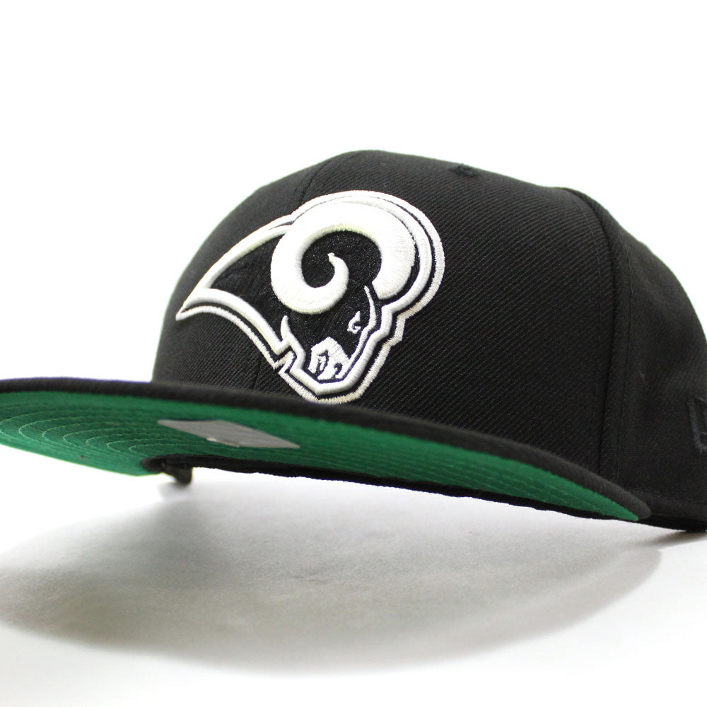Los Angeles Rams New Era 59Fifty Fitted Hat in Black & Green Under Brim. Retro LA Kings Color Way.