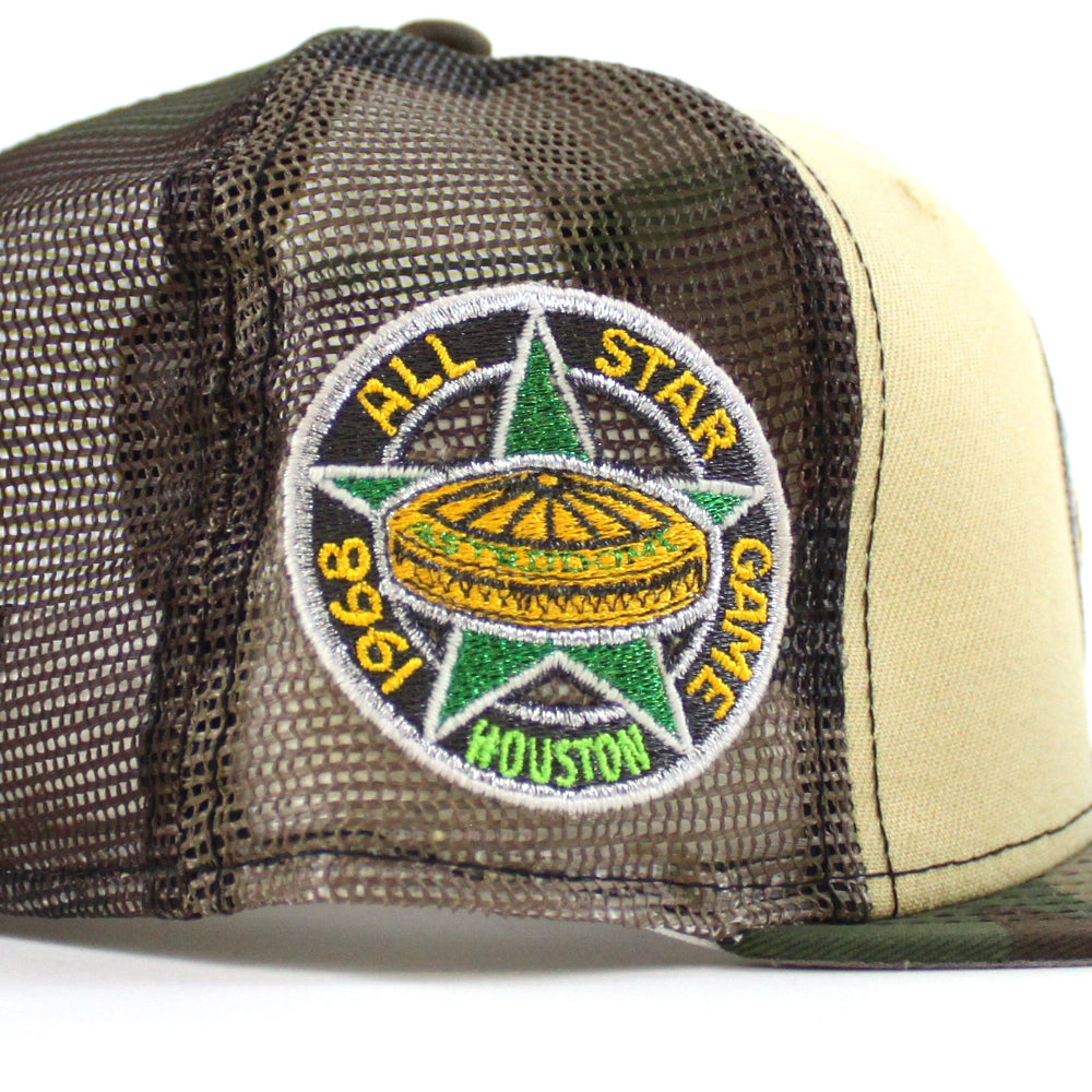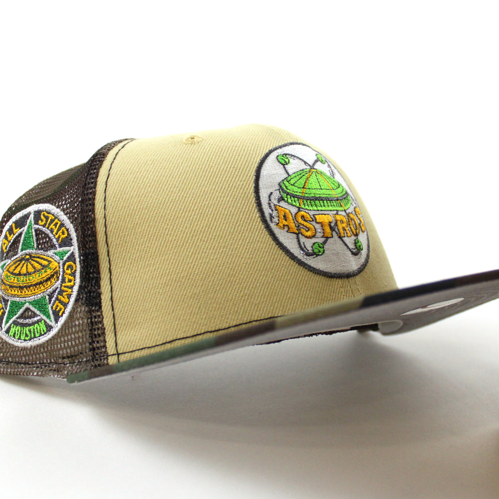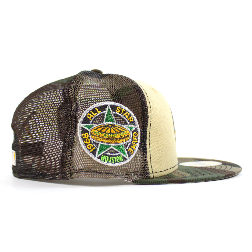 Houston Astros 1968 All Star Game New Era 59Fifty Fitted Hat in Vegas Gold Mesh, WoodLand Camo and Gray Under Brim.Β