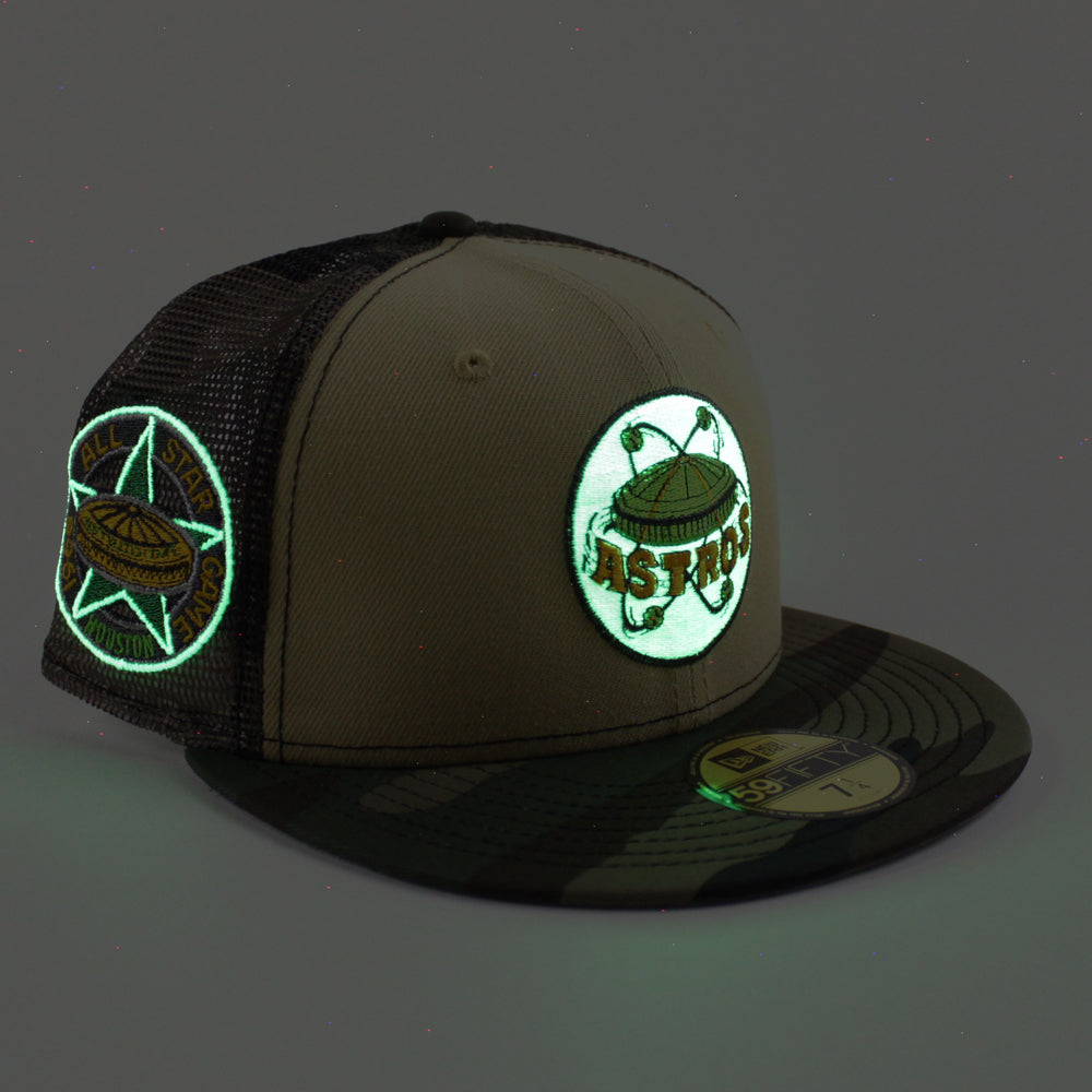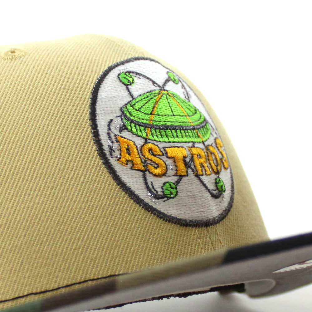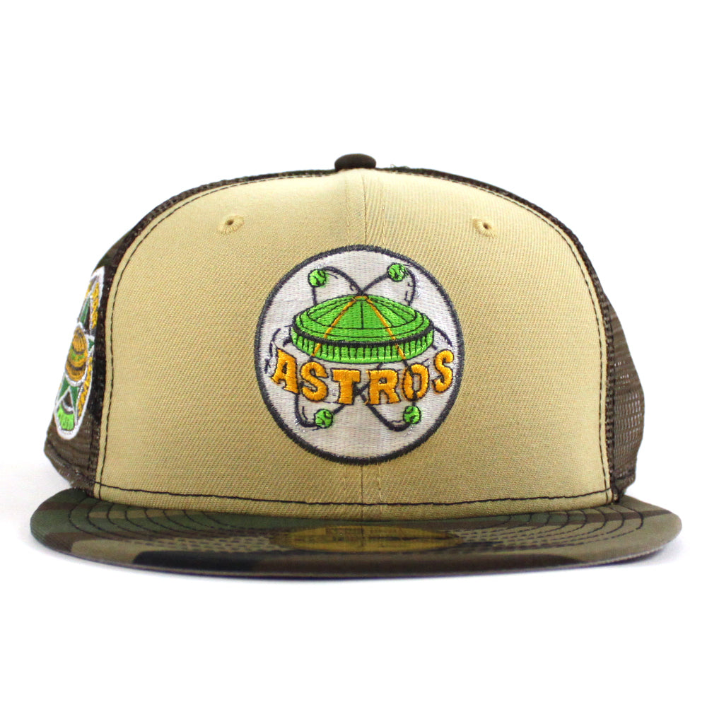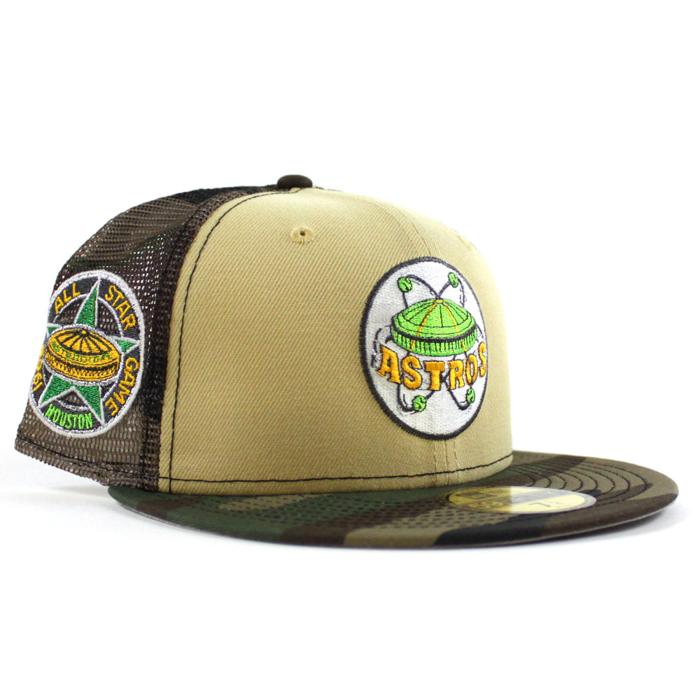 Houston Astros 1968 All Star Game New Era 59Fifty Fitted Hat in Vegas Gold Mesh, WoodLand Camo and Gray Under Brim.Β