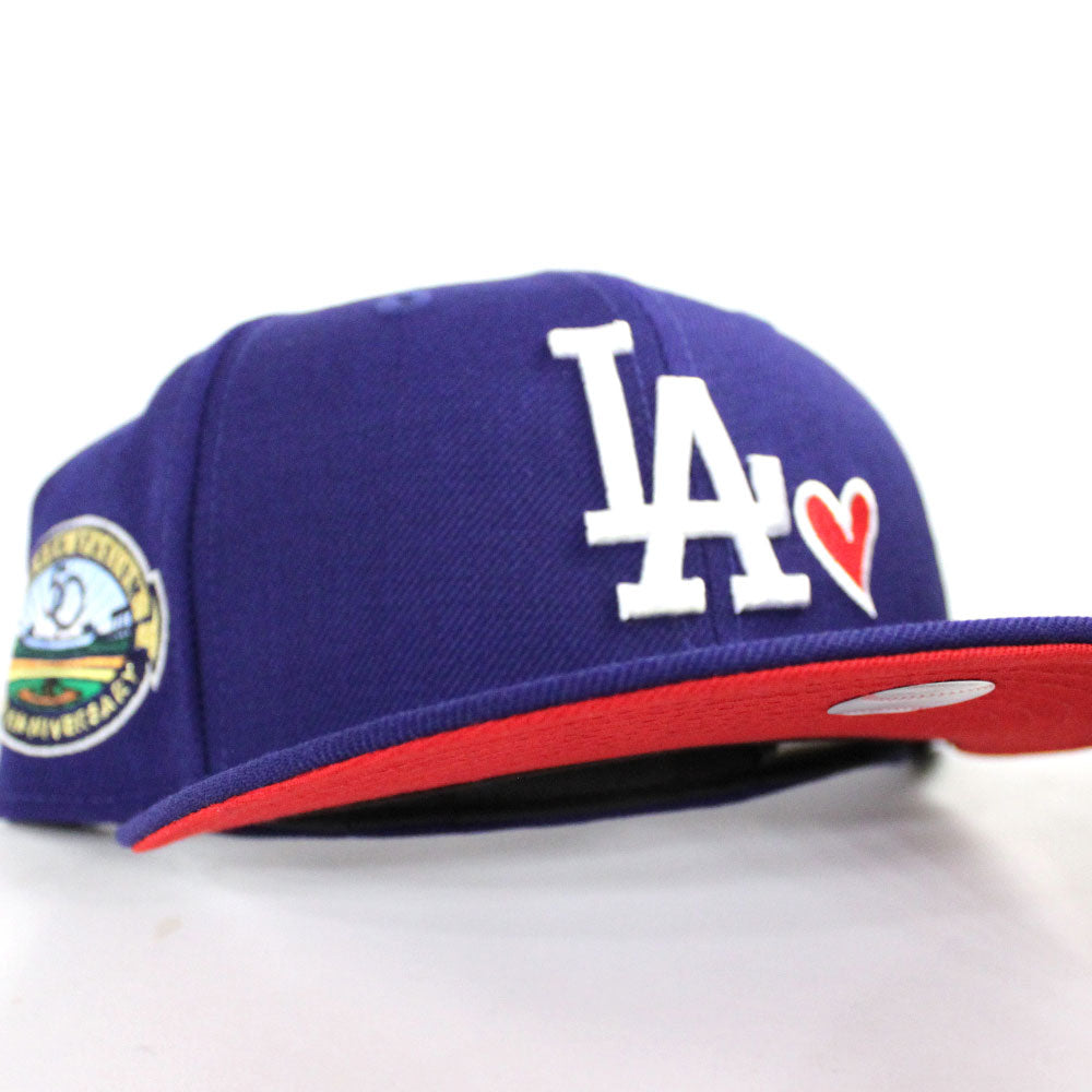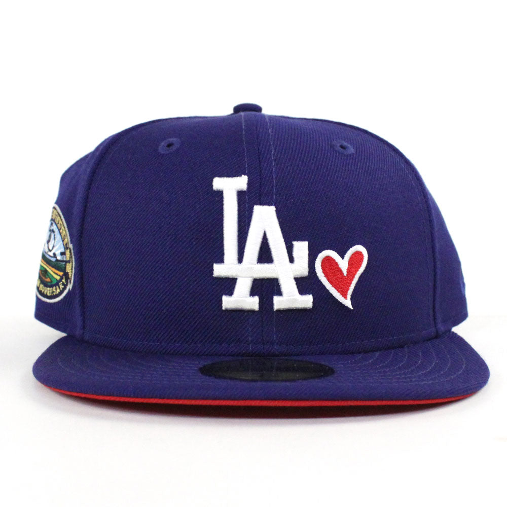 Heart Love Los Angeles Dodgers New Era 59Fifty Fitted Hat in Blue and Red Under Brim.