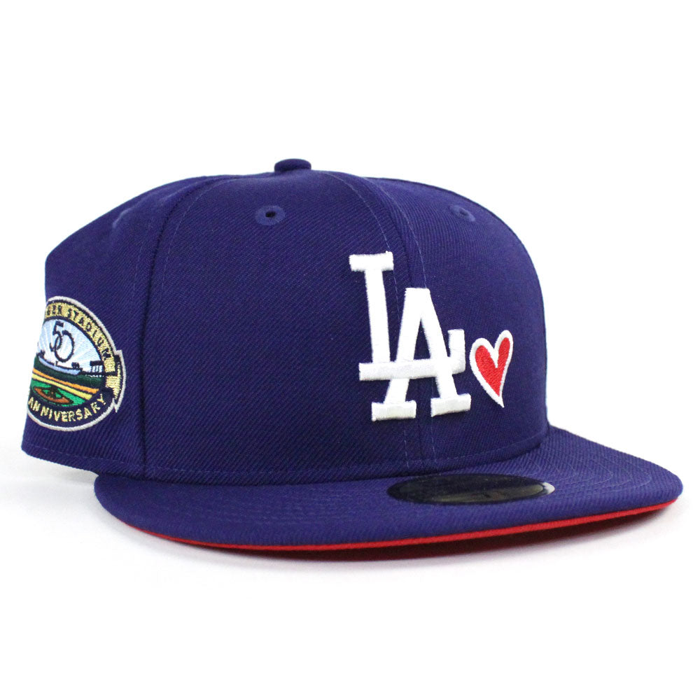 Love Los Angeles Dodgers Stadium 50th Anniversary New Era 59Fifty Fitted Hat (Red Under Brim)