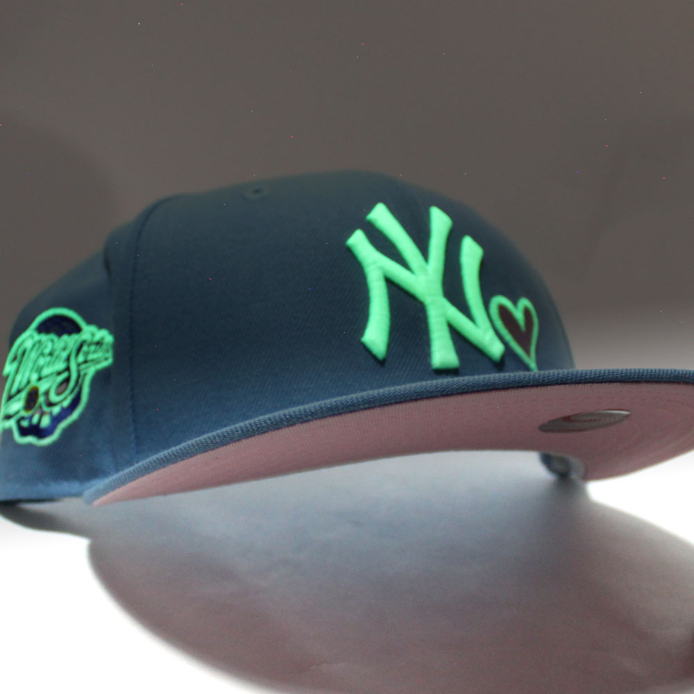 Love New York Yankees 1998 World Series New Era 59Fifty Fitted Hat (Glow in the Dark Sky Blue Pink Under Brim)