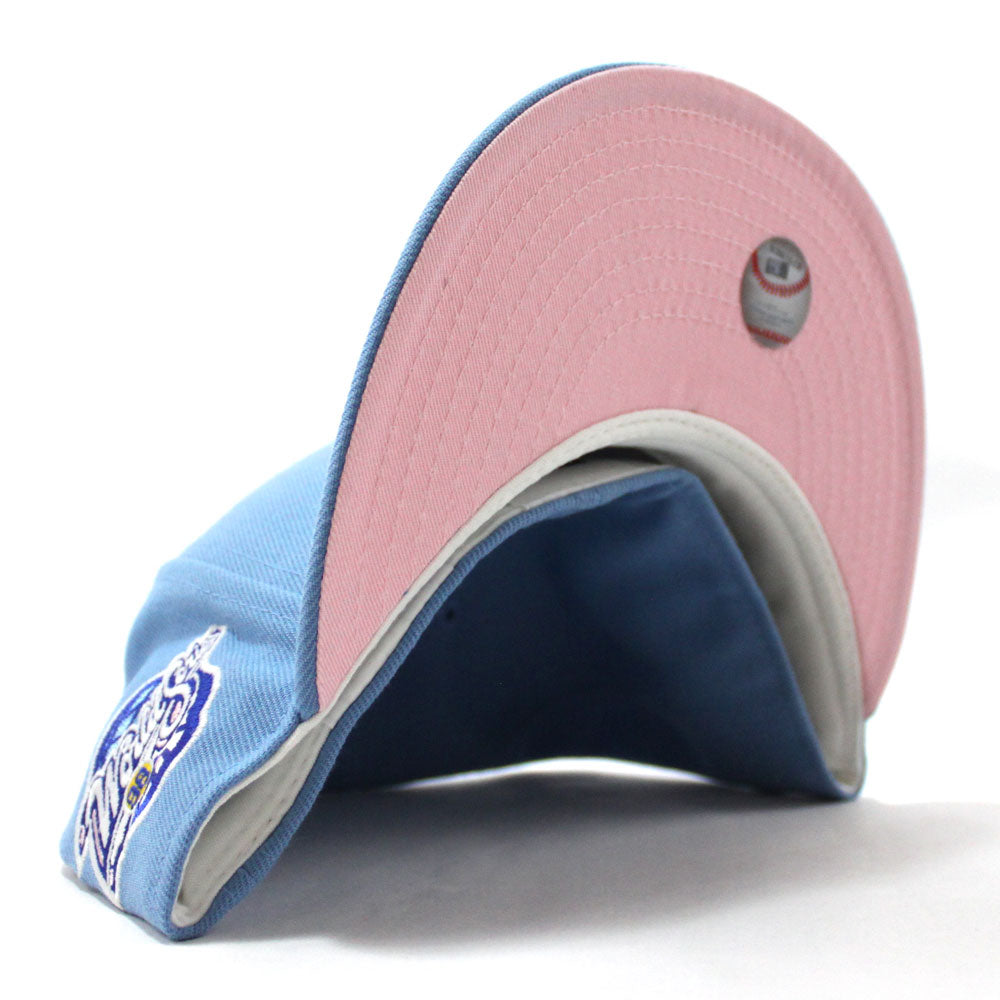 Love New York Yankees 1998 World Series New Era 59Fifty Fitted Hat in Sky Blue & Pink Under Brim.