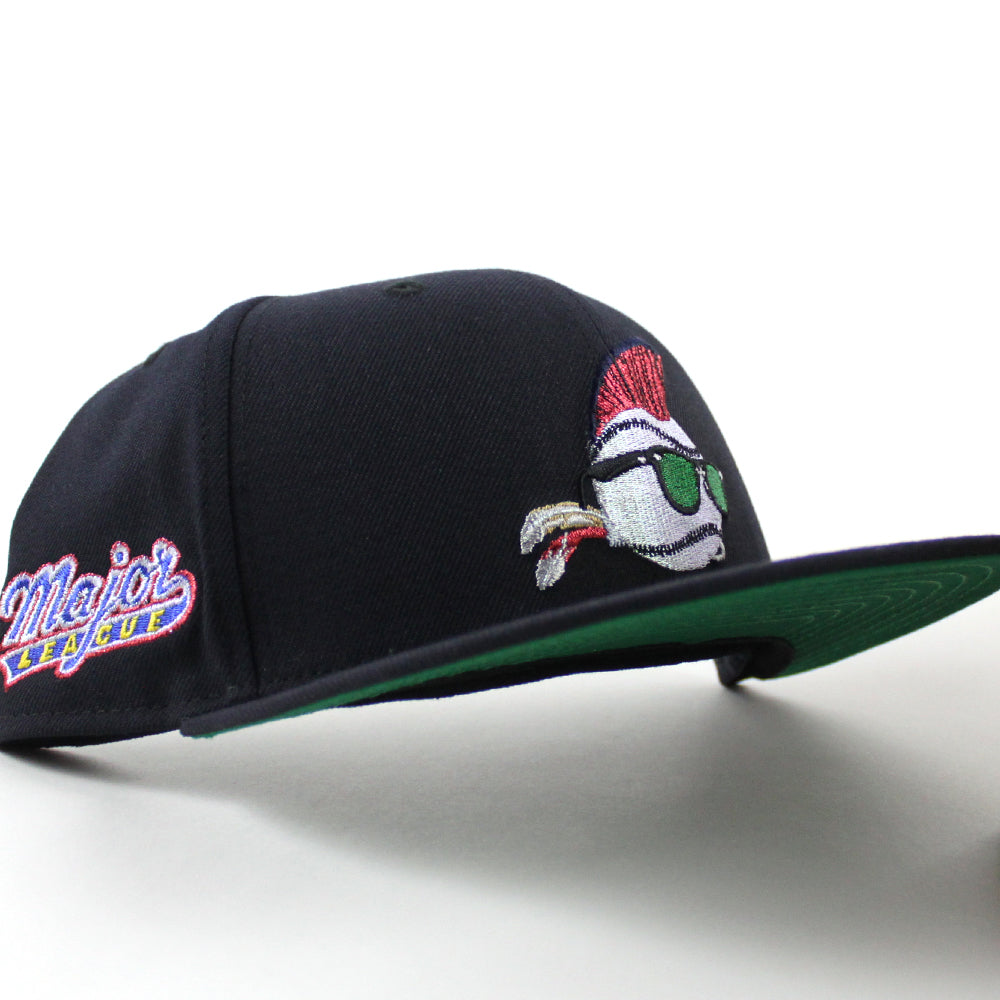 MAJOR LEAGUE Wild Thing New Era 59Fifty Fitted Hat in Navy with Green Under Brim.
