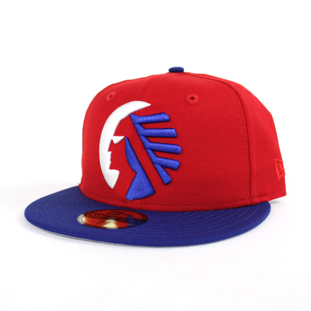Memphis Chicks New Era 59fifty Fitted Hat is in Red, Blue, White with Gray Under Brim. This Fitted Cap is for Air Jordan USA.
