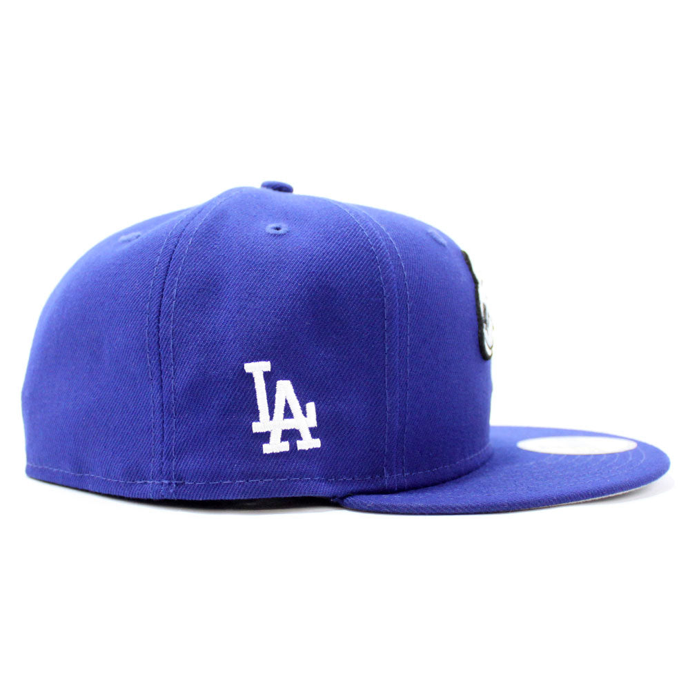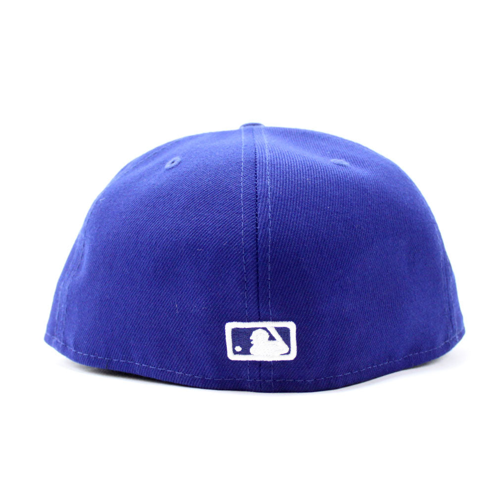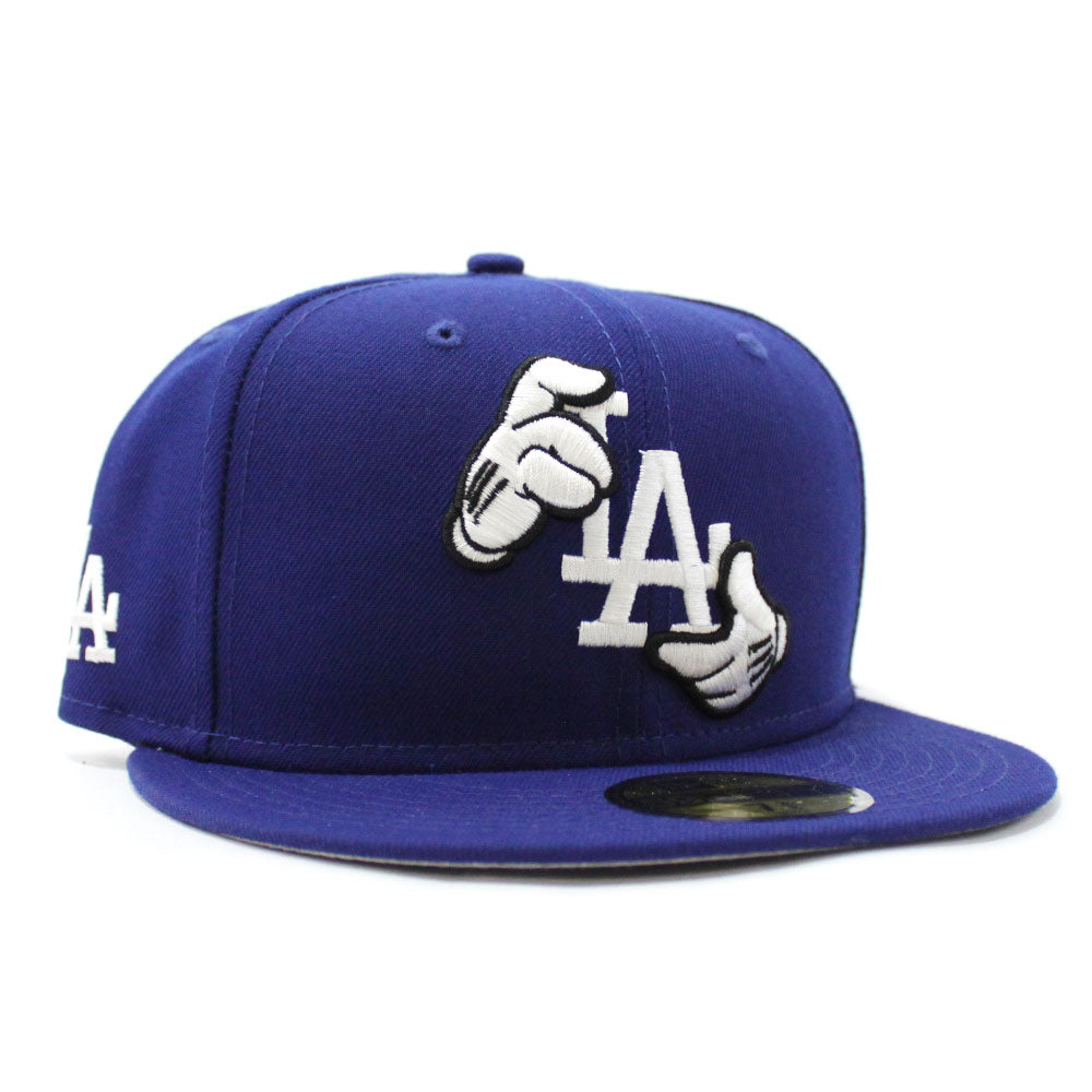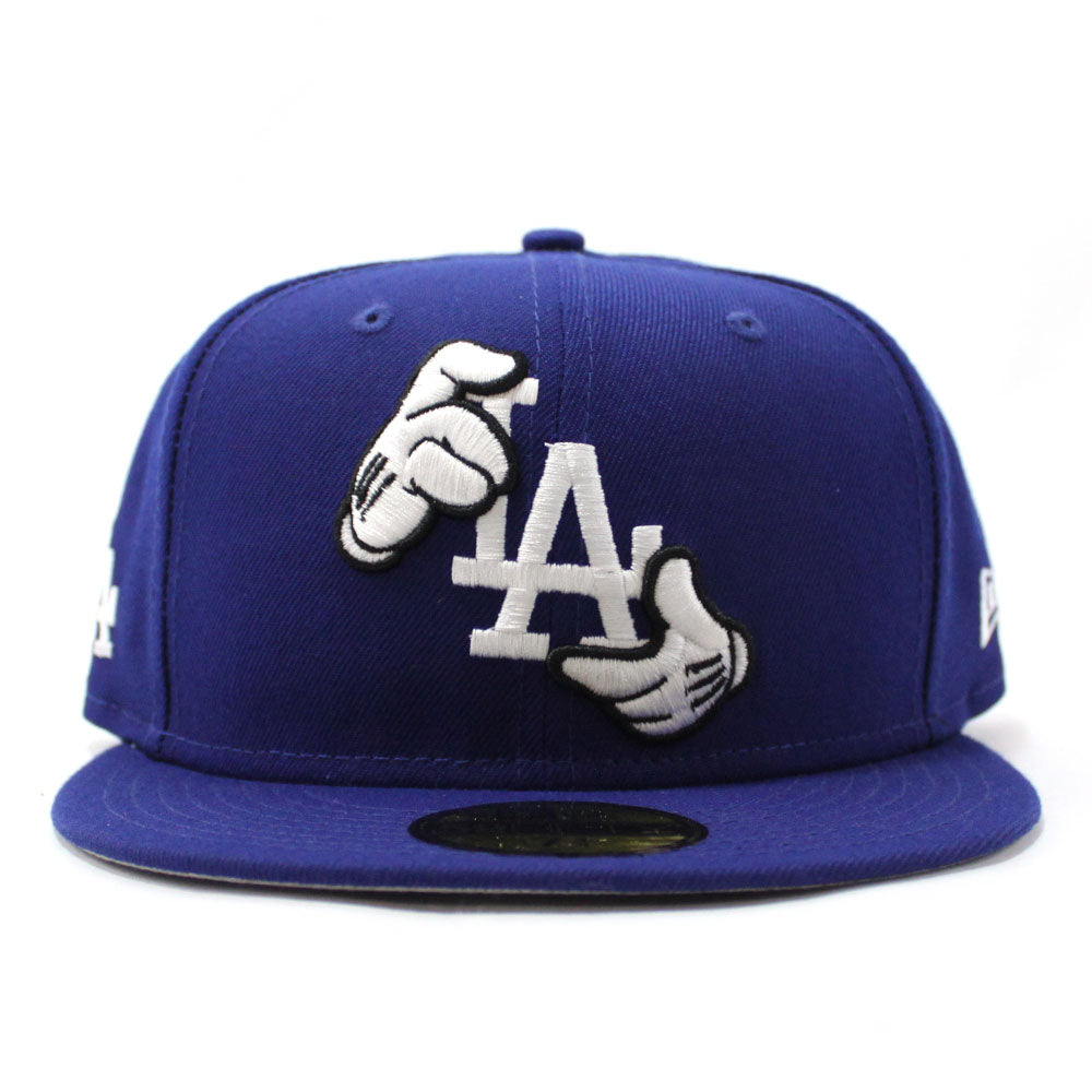 MICKEY MOUSE x Los Angeles Dodgers LA Logo Patch New Era 59Fifty Fitted Hat in Blue & Gray Under Brim.