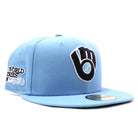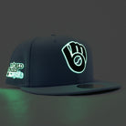Milwaukee Brewers 1982 World Series New Era 59Fifty Fitted Hat in Sky Blue, Black & Green Under Brim. Glow in the Dark Logo.