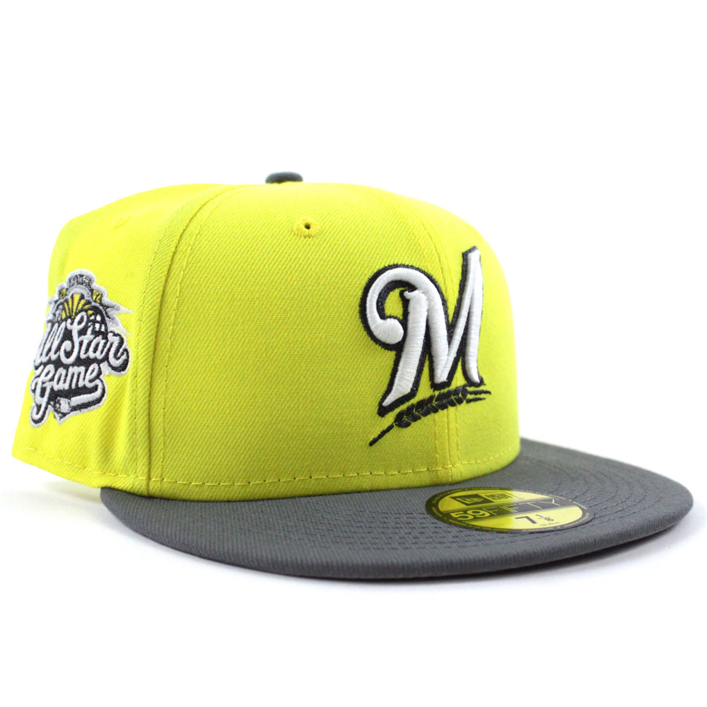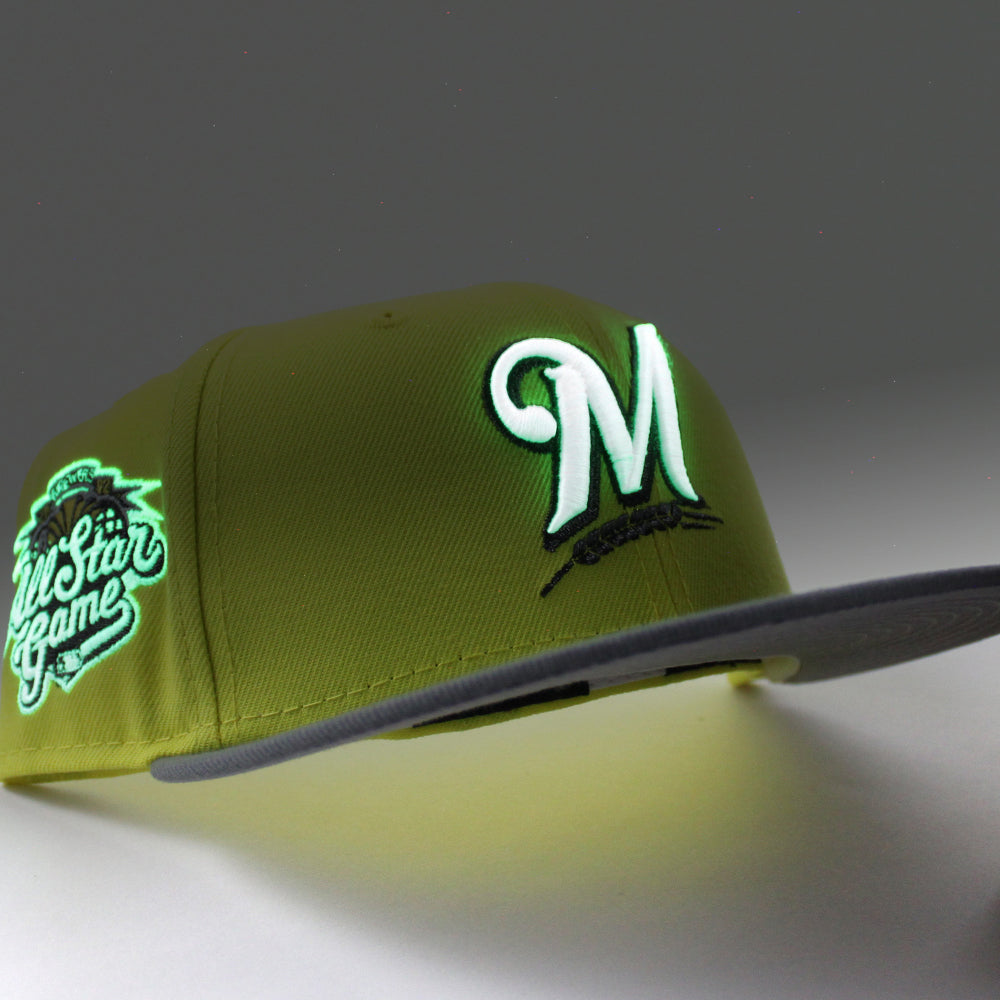 Milwaukee Brewers 2002 All Star Game New Era 59Fifty Fitted Hat (GITD Soft Yellow Stone Gray Gray Under Brim)