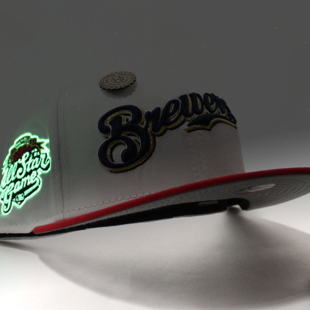 Milwaukee Brewers 2002 All-Star Game New Era 59Fifty Fitted Hat in White, Red, Navy, Glow in the Dark & 3M Under Brim.