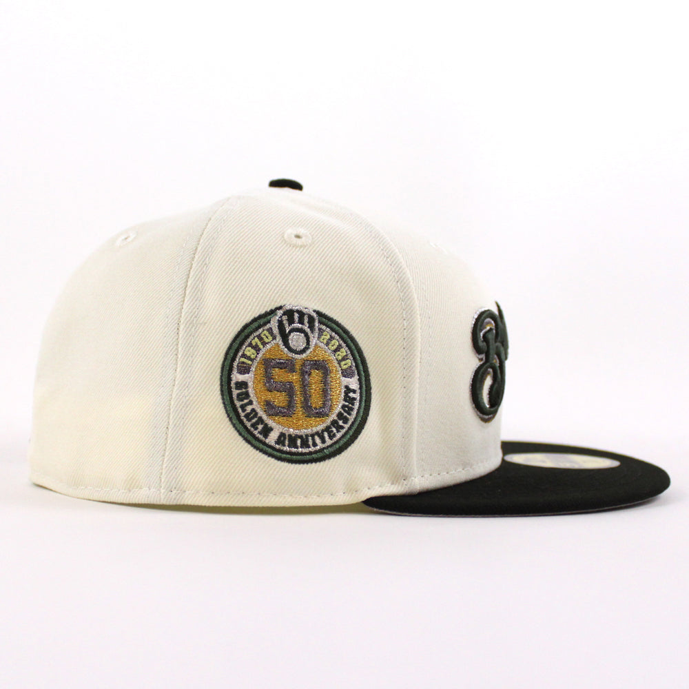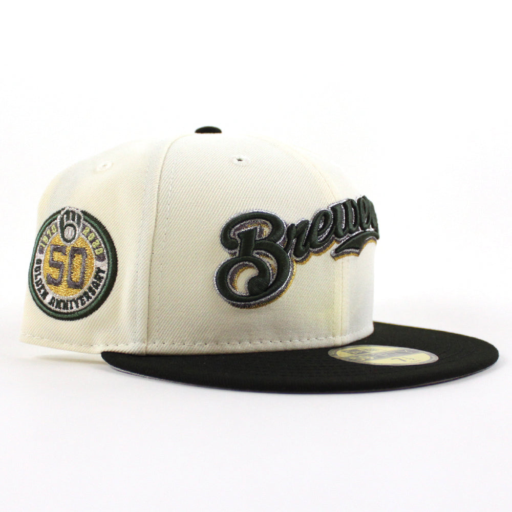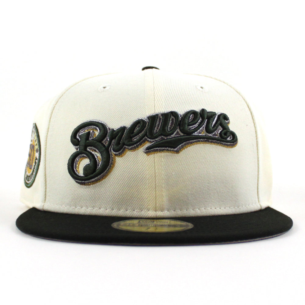 Milwaukee Brewers 50th New Era 59Fifty Fitted Hat in Chrome White, Black and Gray Under Brim.