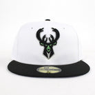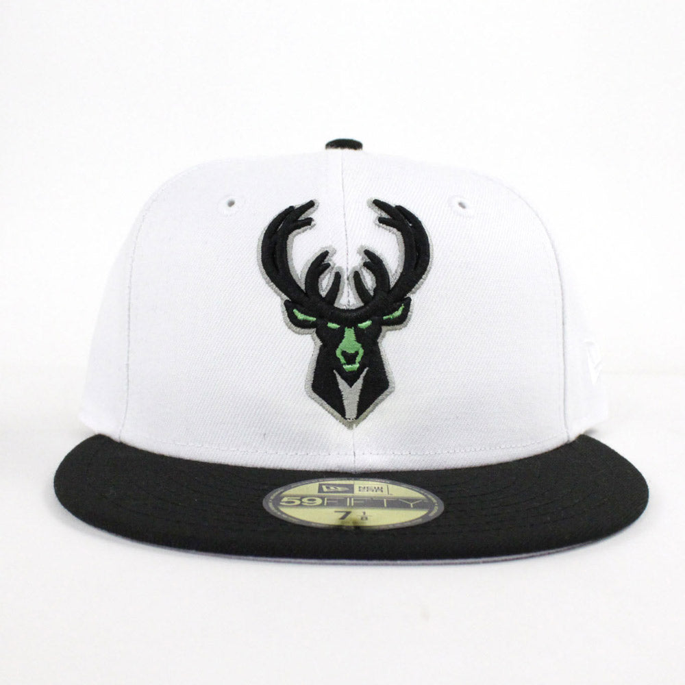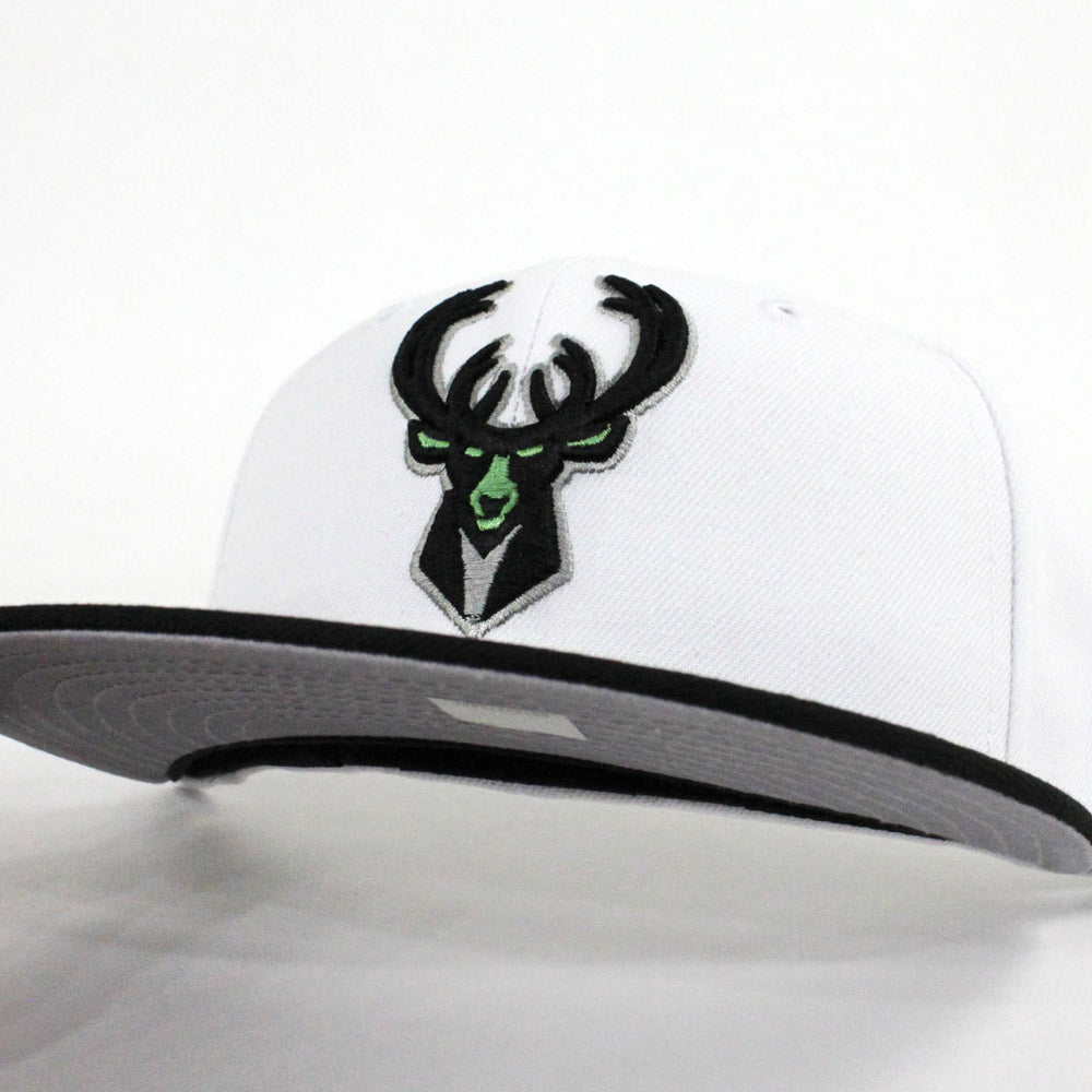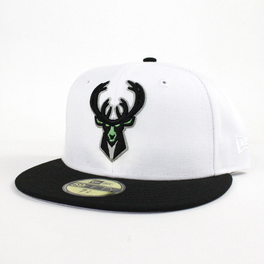 Milwaukee Bucks New Era Fitted 59Fifty Hat is White & Black with Gray Under brim. For Air Jordan 4 Retro 'Pale Citron'