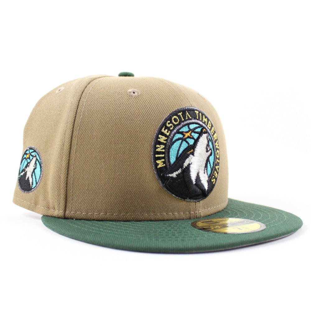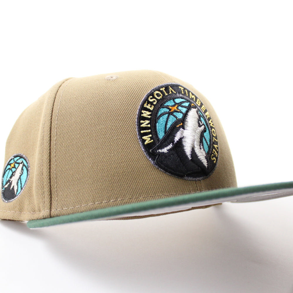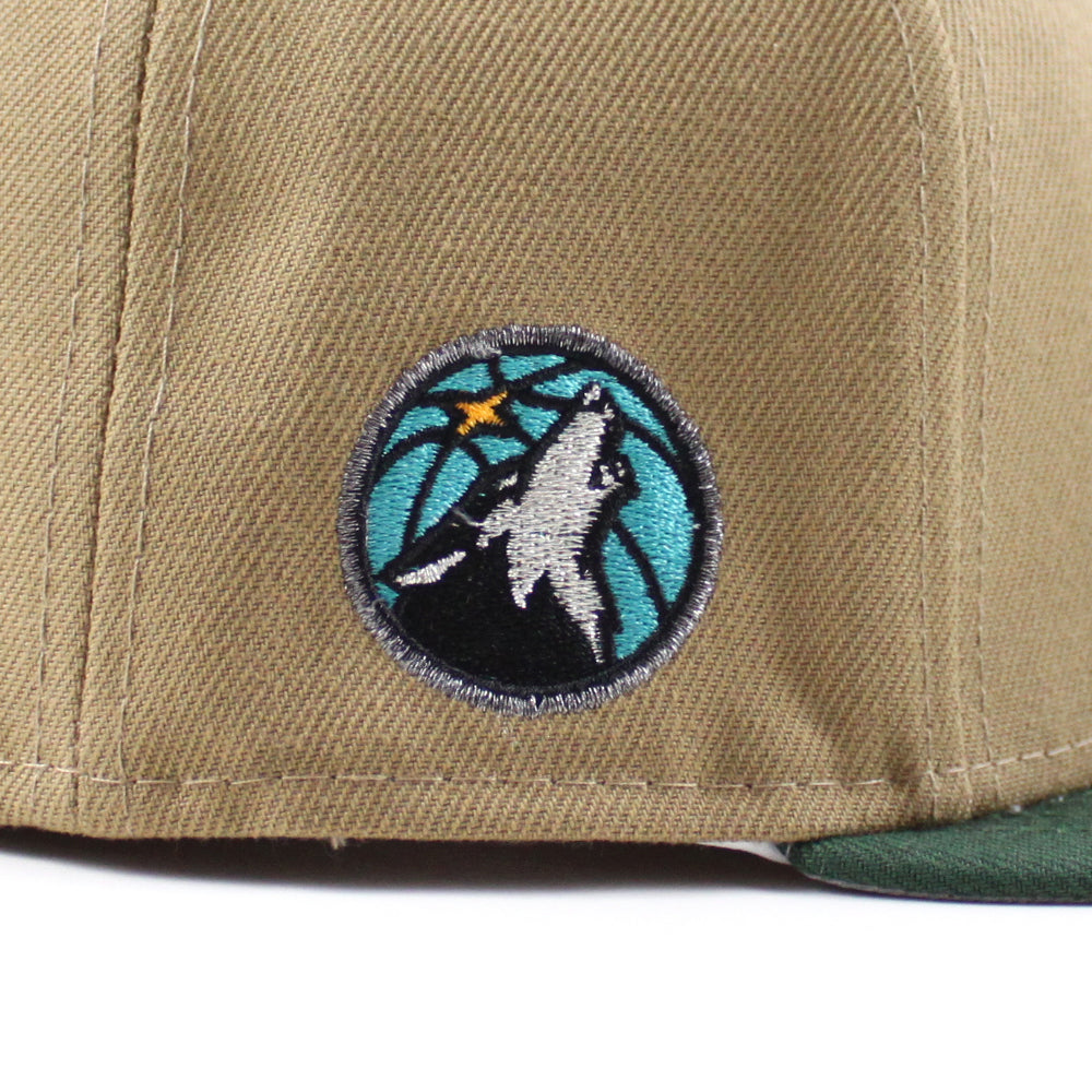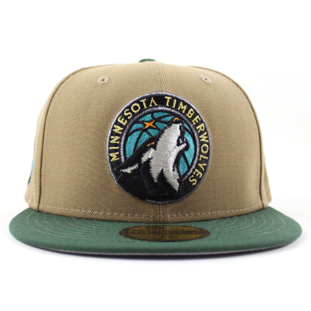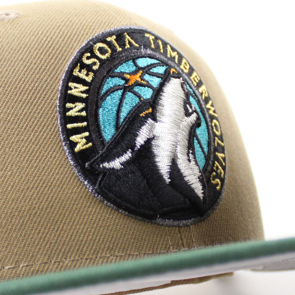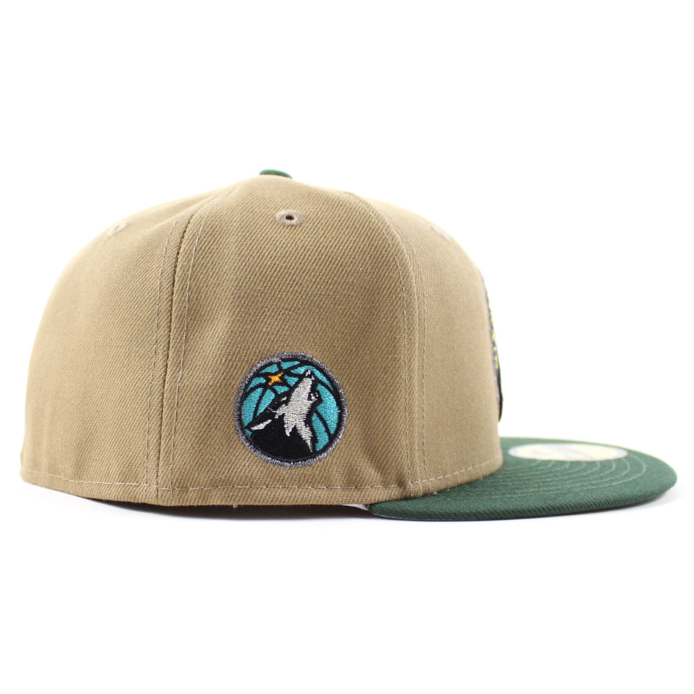 Minnesota Timberwolves NBA New Era 59Fifty Fitted Hat in Khaki, Green and Gray Under Brim