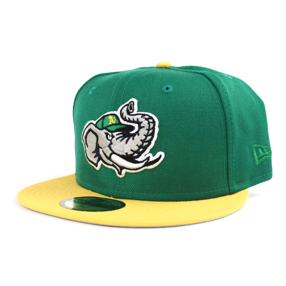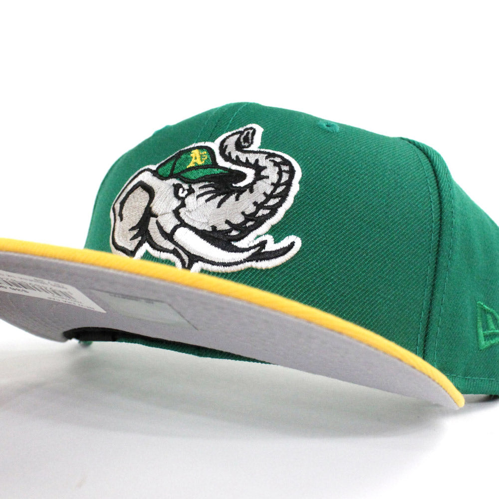 OG Athletics Color Way!! Modesto Athletics New Era 59FIFTY Fitted Hat is Kelly Green based and Yellow on the visor and button. Its finished off with a gray under brim.