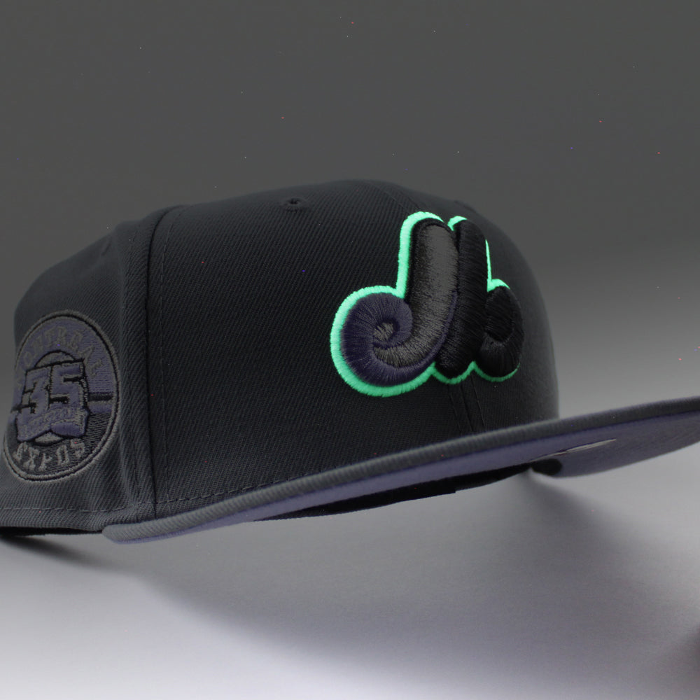 Montreal Expos 35th Anniversary New Era Fitted 59Fifty Hat (GITD Storm Gray Lavender Under Brim)