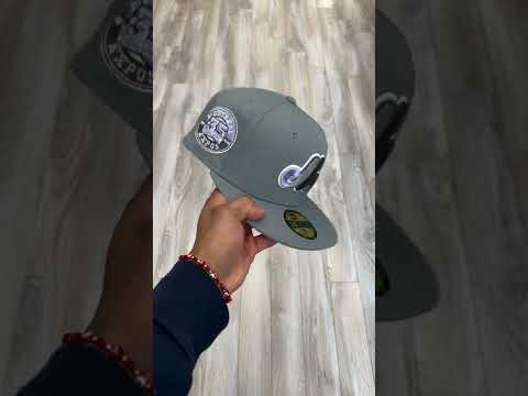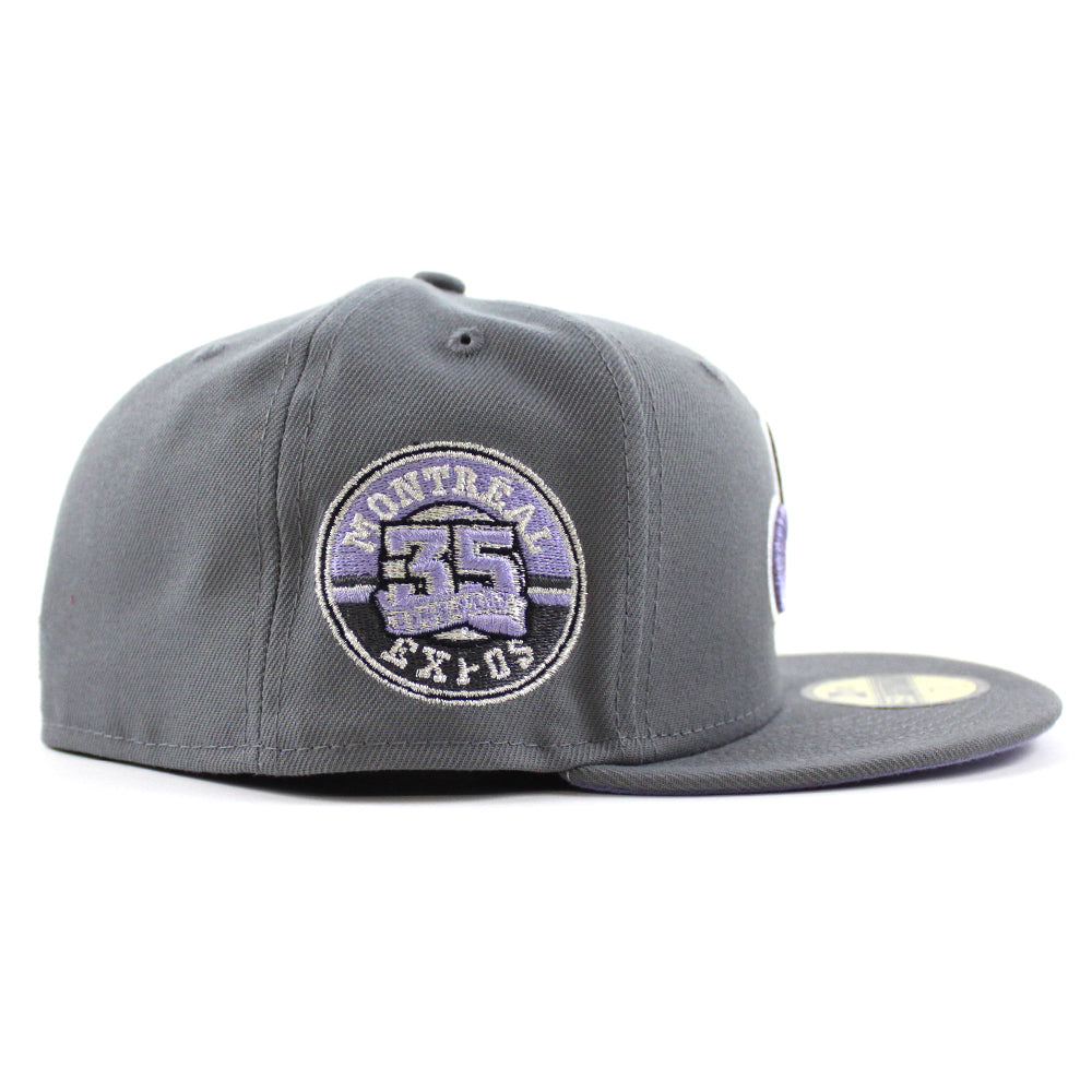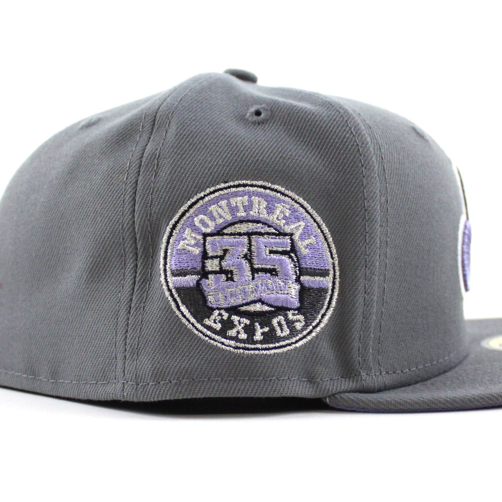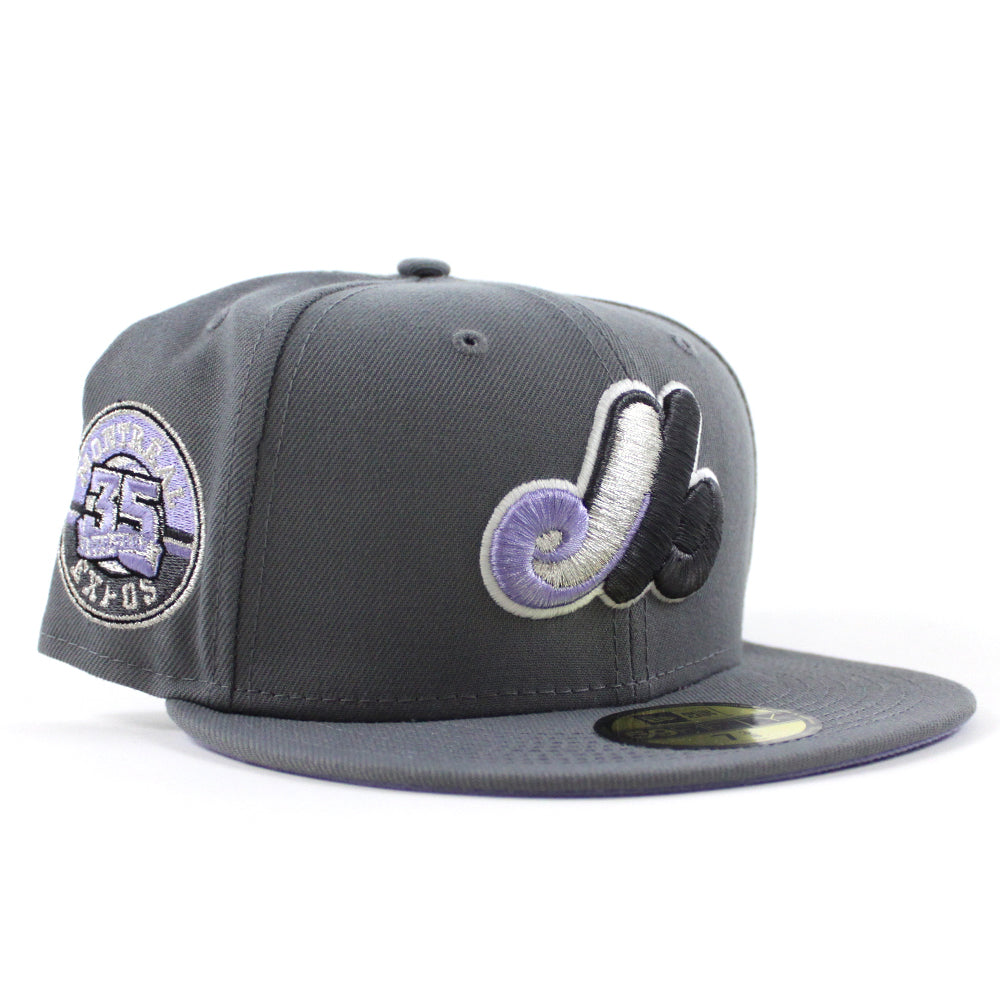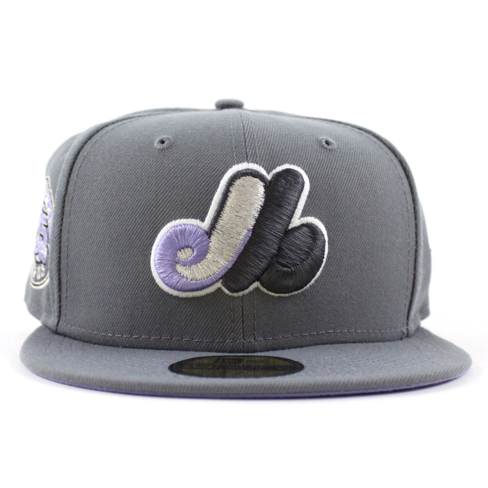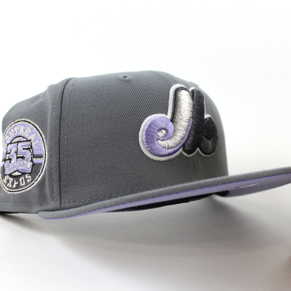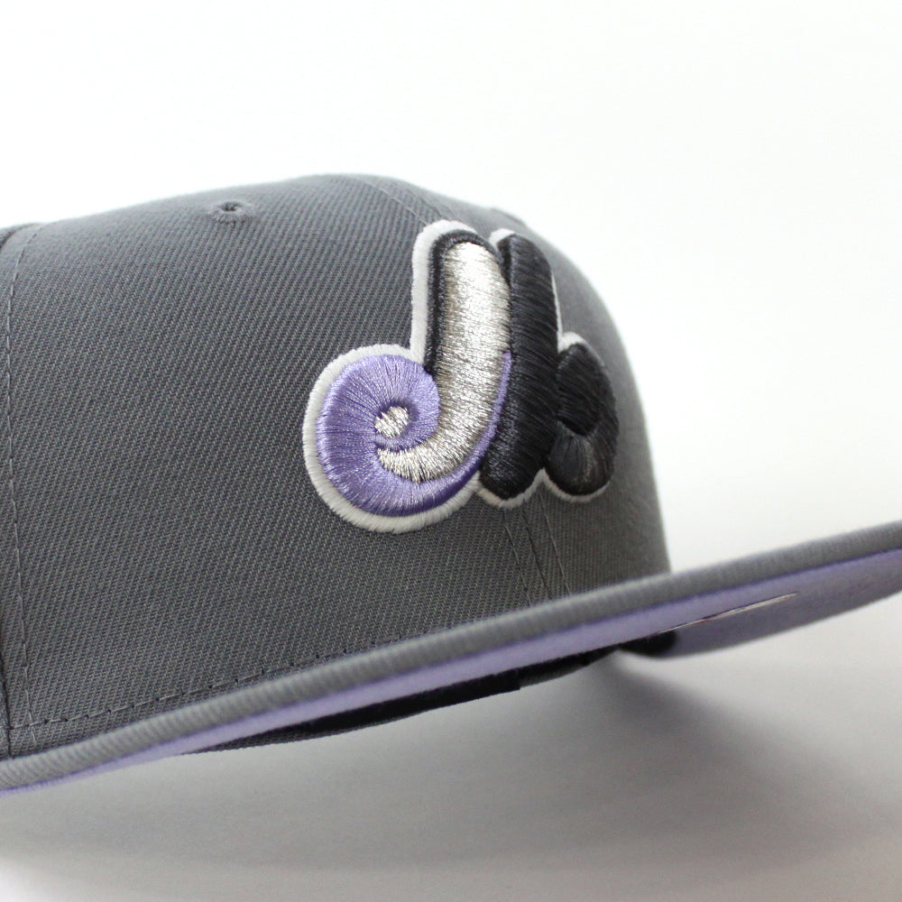 Montreal Expos 35th Anniversary New Era Fitted 59Fifty Hat in Storm Gray with Lavender Under Brim.