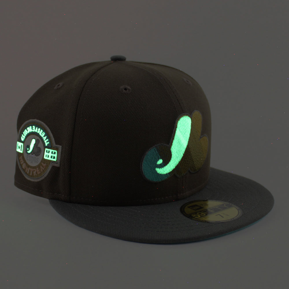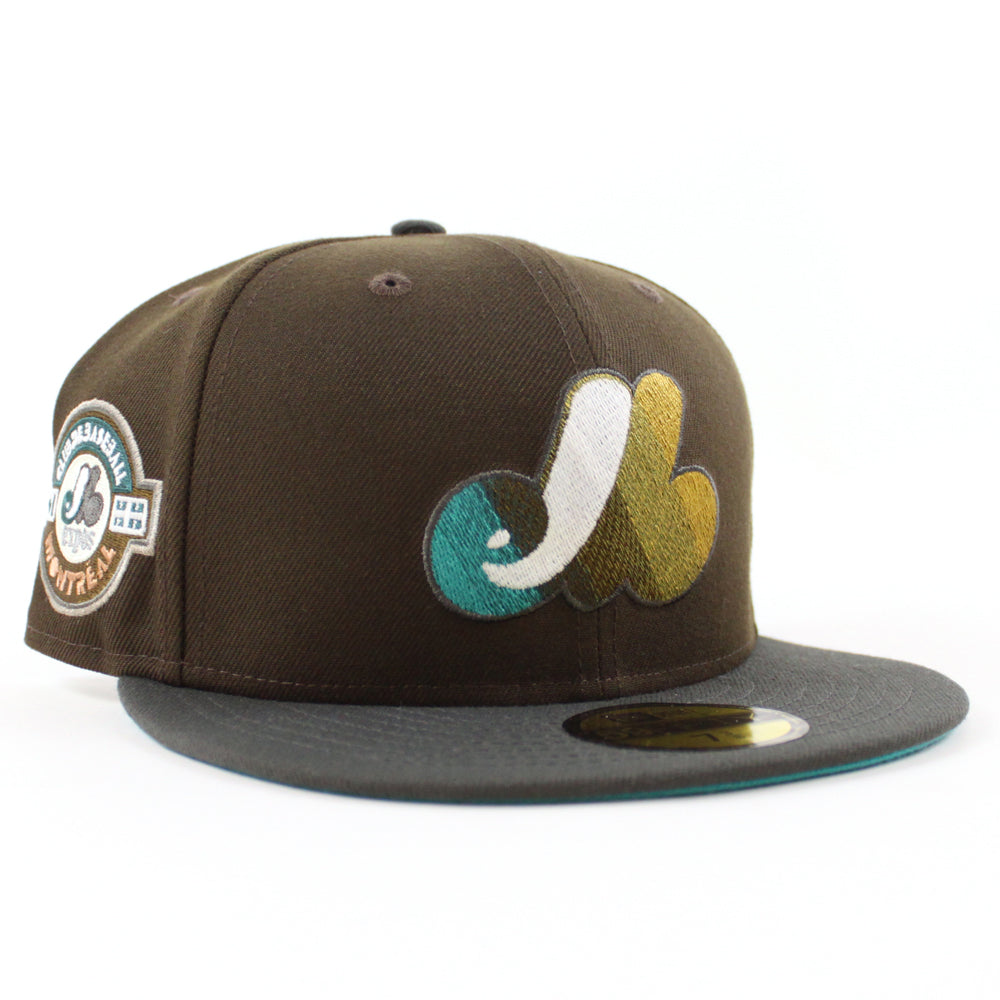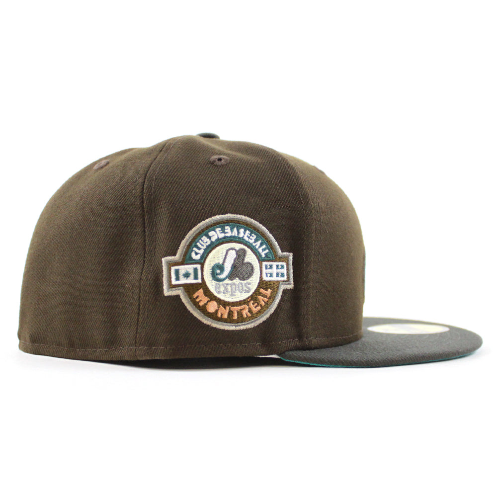 Montreal Expos Club De BaseBall Montreal Era Fitted 59Fifty Hat in Walnut, Pewter and Pine Needle Under Brim.