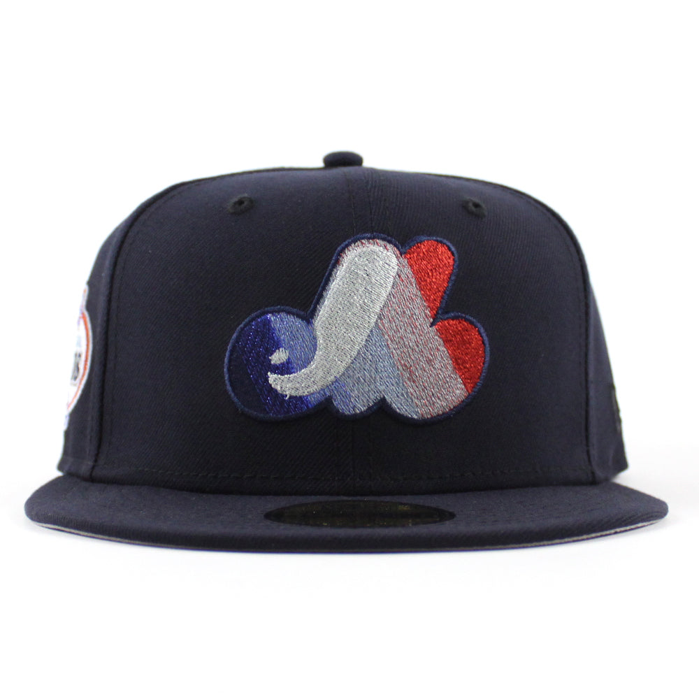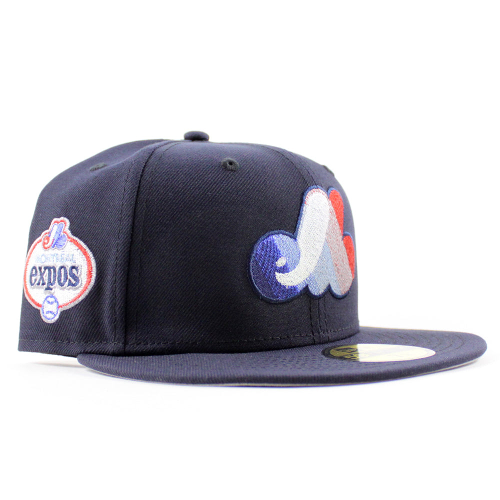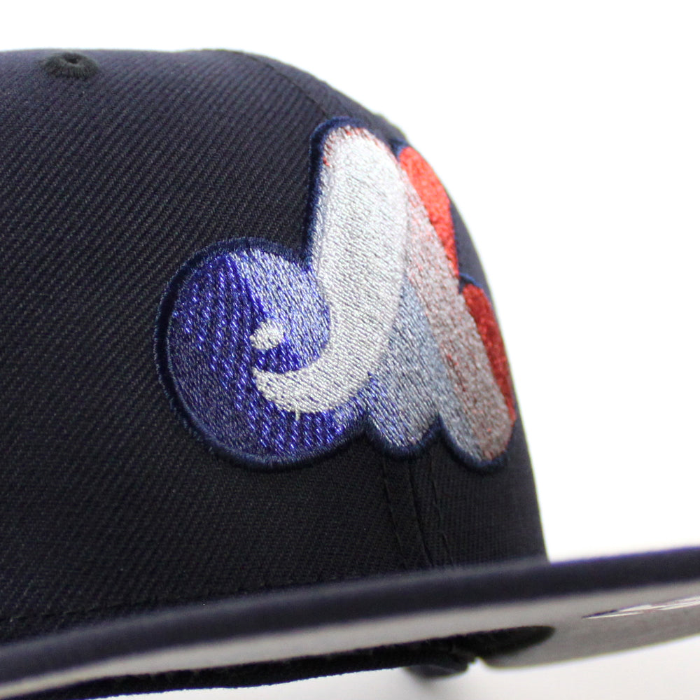 Montreal Expos Expos Patch New Era Fitted 59Fifty Hat in Navy and Gray Under Brim.