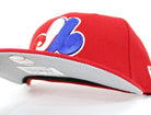 Retro Montreal Expos New Era 59Fifty Fitted Hat in Red and with a Grey under brim and black inside lining. This is a great retro Montreal Expos New Era 59Fifty Fitted Cap to throw in with the rest of the gray bottom collection!