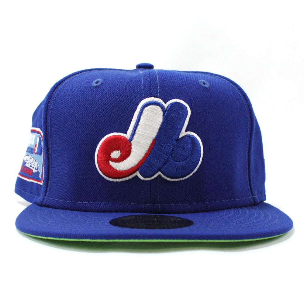 Montreal Expos OLYMPIC STADIUM New Era Fitted 59Fifty Hat in Blue & Lime Green Under Brim.