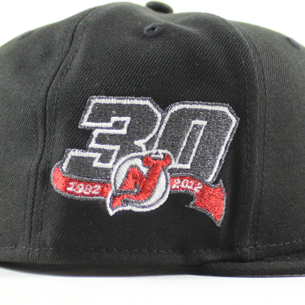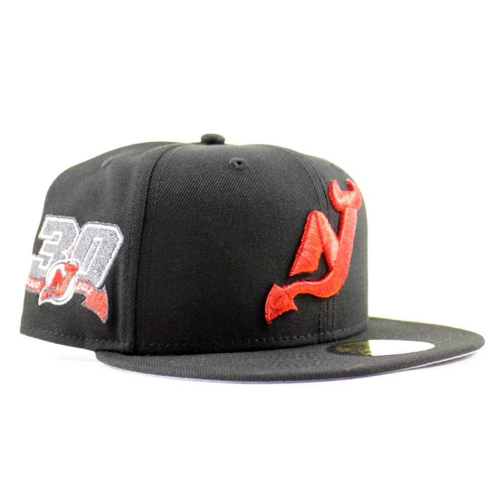 New Jersey Devils 30 Years New Era 59Fifty Fitted Hat in Black and Gray Under Brim.