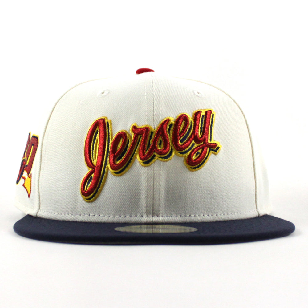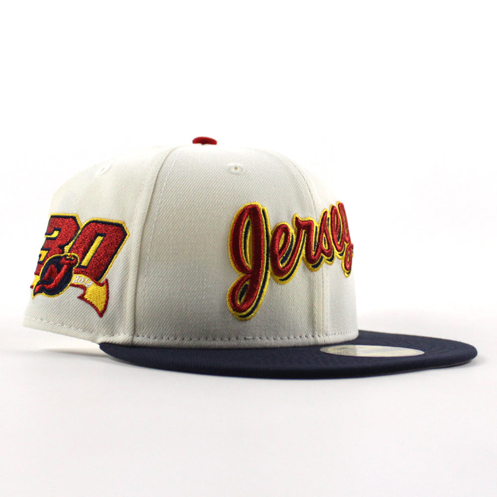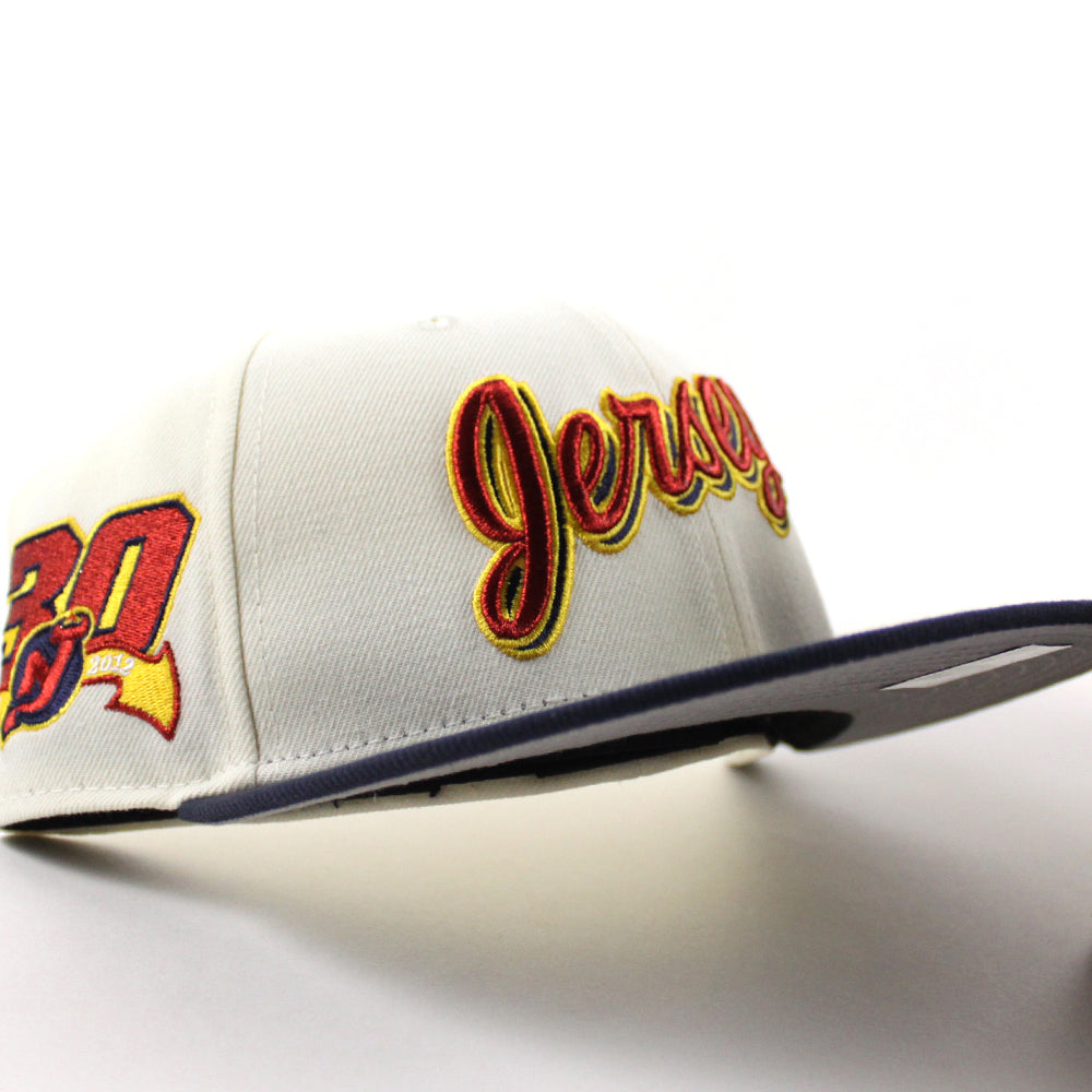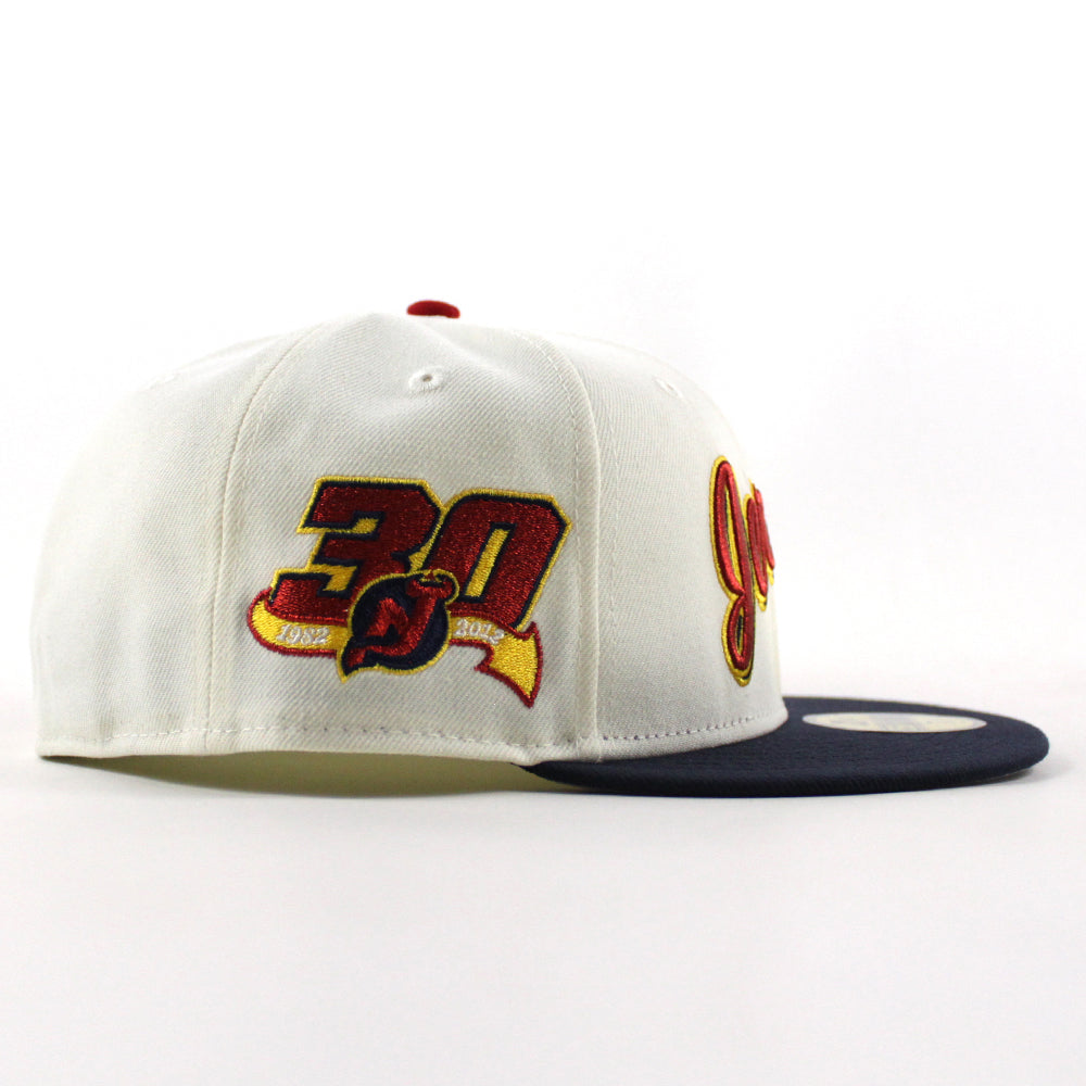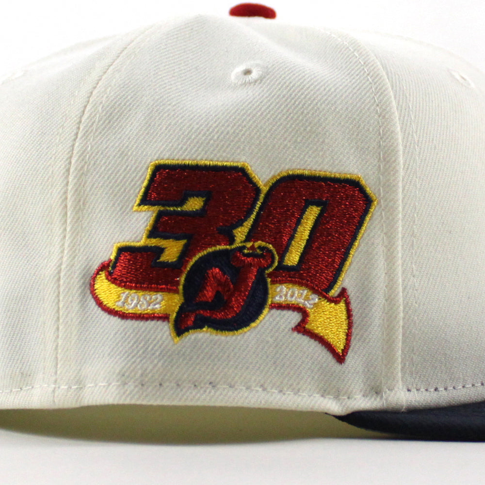 New Jersey Devils 30th Anniversary New Era 59Fifty Fitted Hat in Chrome White, Dark Navy and Gray Under brim.