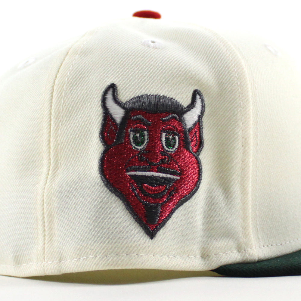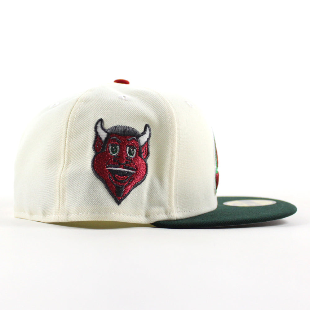 New Jersey Devils Devil Patch New Era 59Fifty Fitted Hat in Chrome White, Dark Green and a Gray Under Brim.