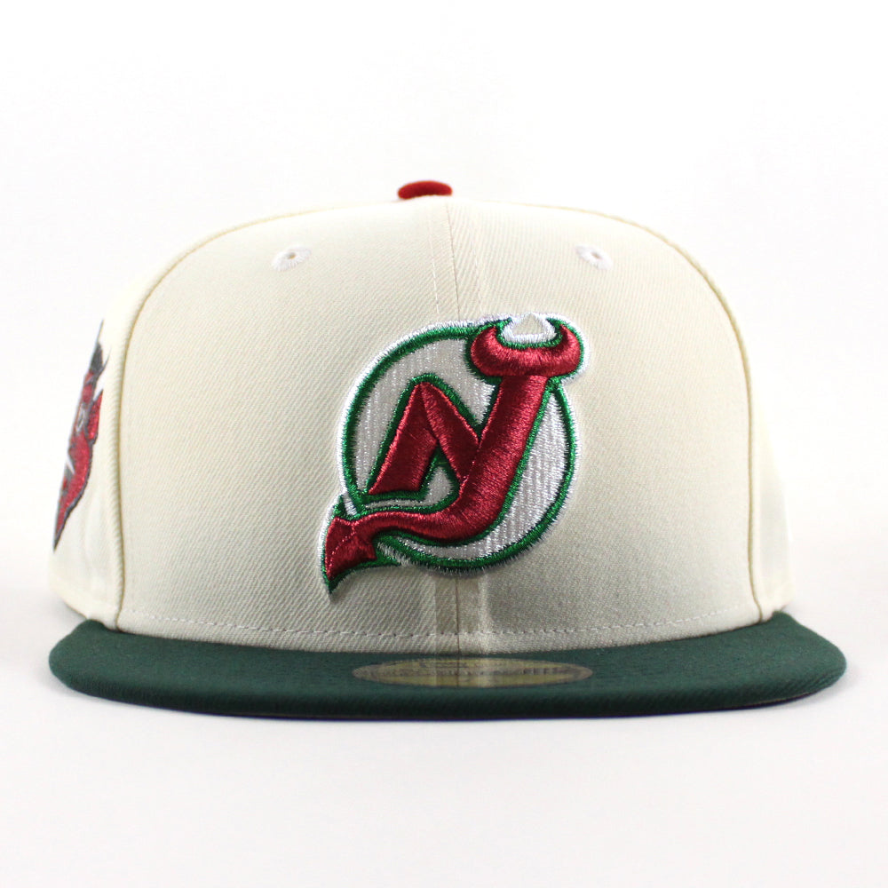 New Jersey Devils Devil Patch New Era 59Fifty Fitted Hat (Chrome White Dark Green Gray Under Brim)