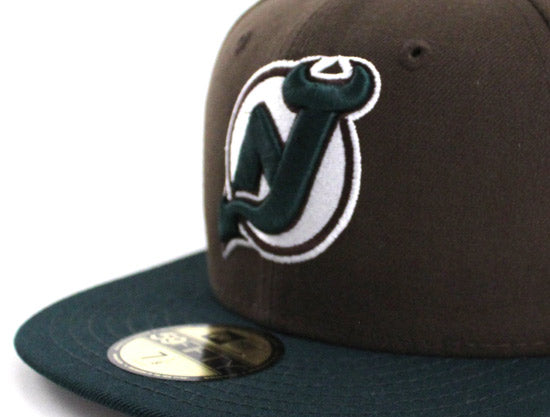 With fall looming its time to break out those Timberlands. We did up the local team New Jersey Devils in the classic color-way of brown and dark green. The New Jersey Devils New Era 59FIFTY Fitted Hat is brown based and has dark green visor and button. The logo itself is white, brown and dark green. This sets up perfectly for the fall and layering up. For BEEF & BROC.