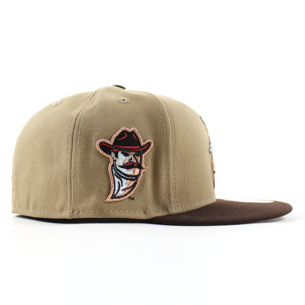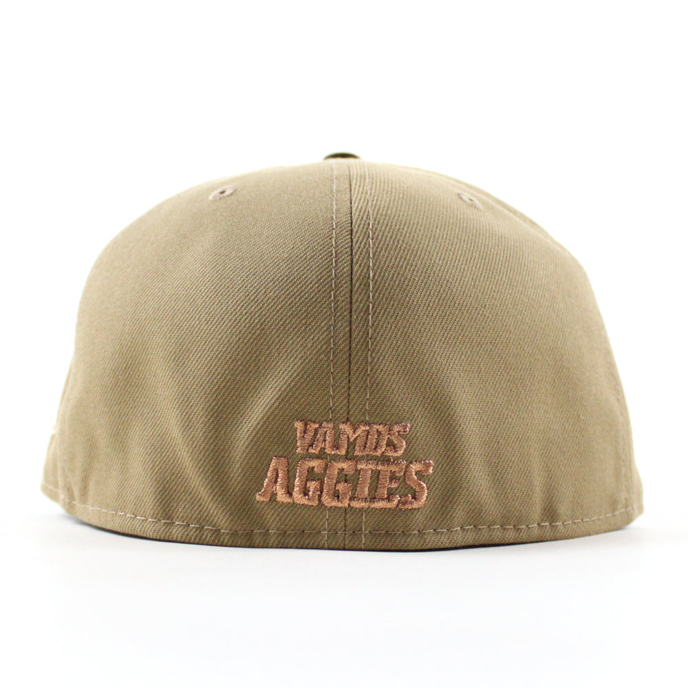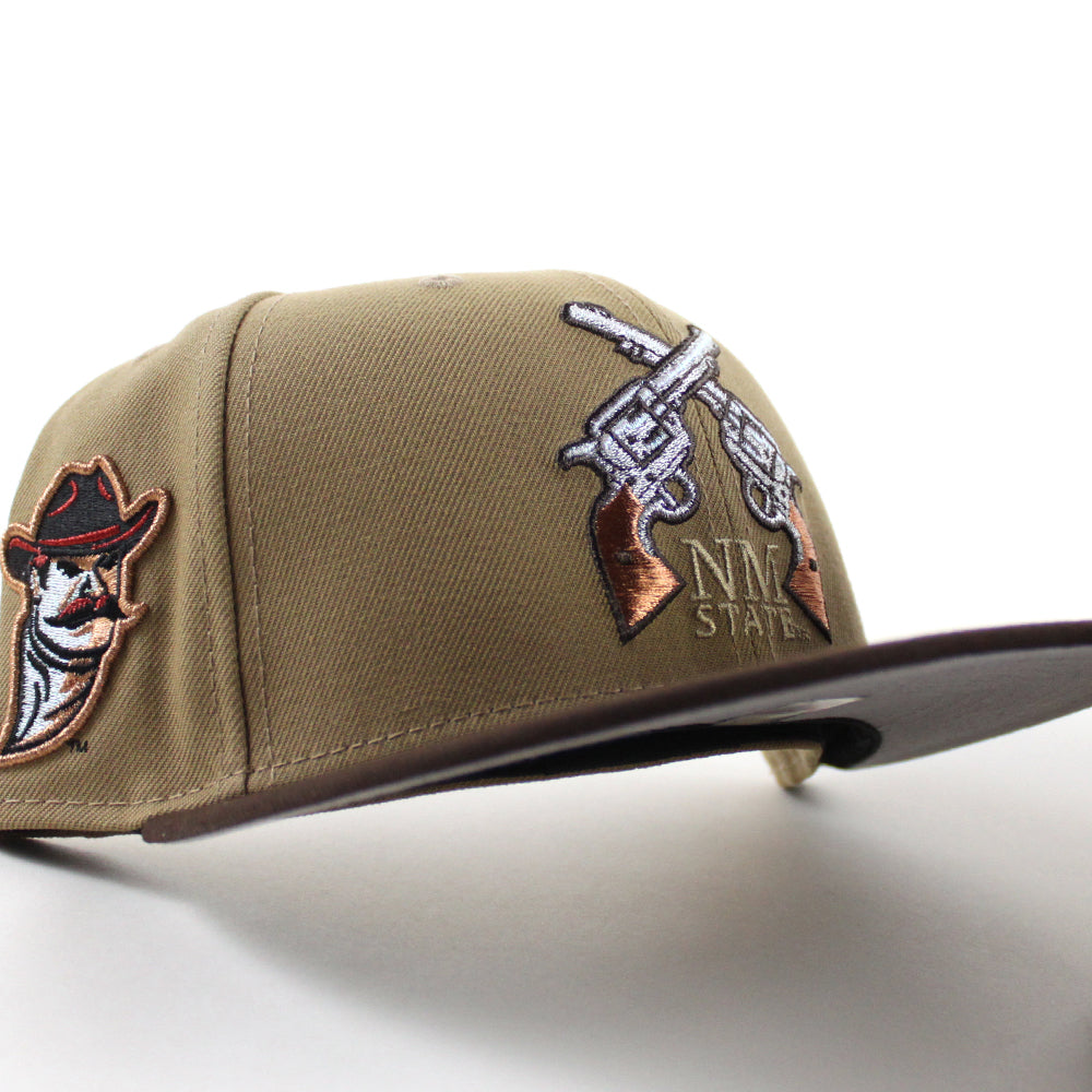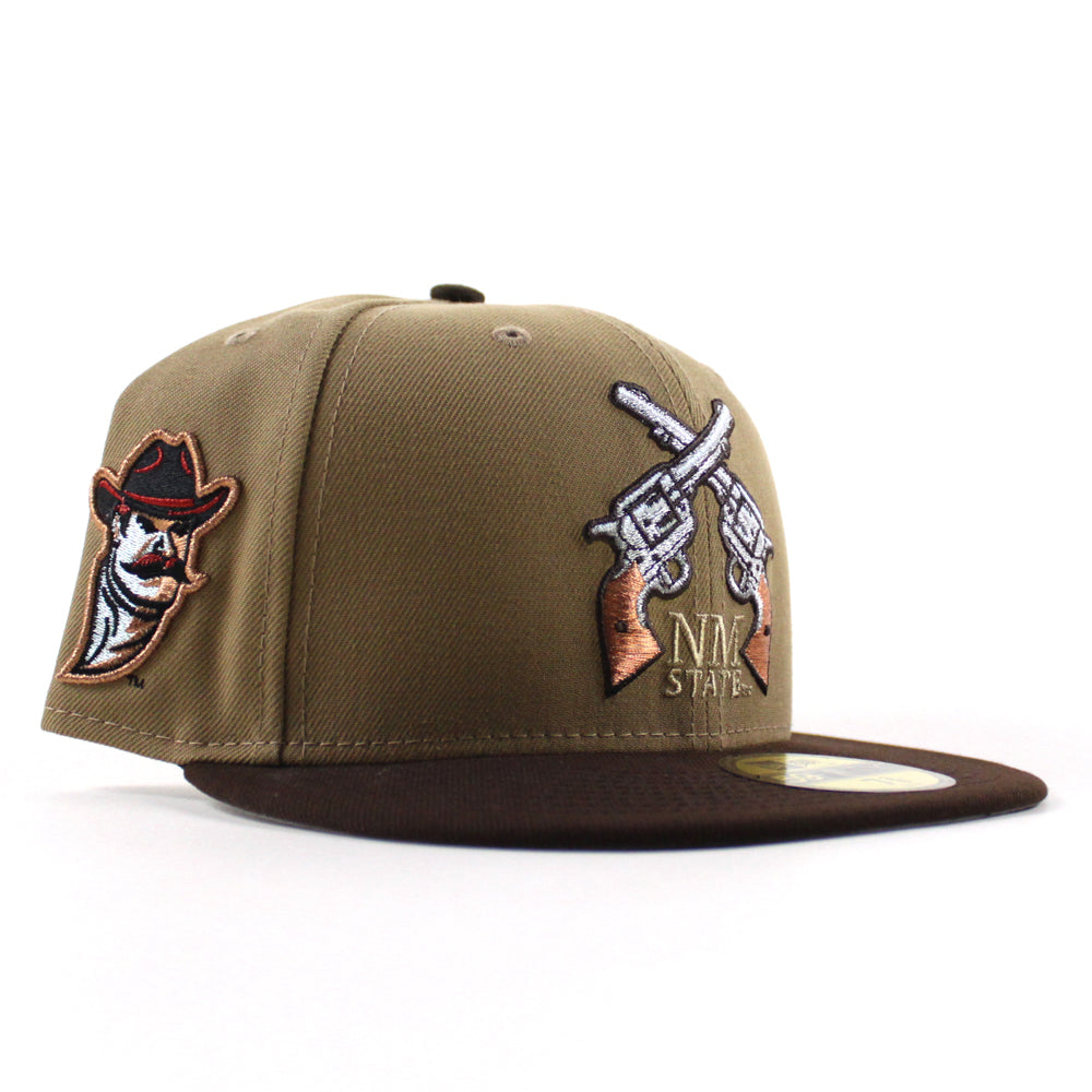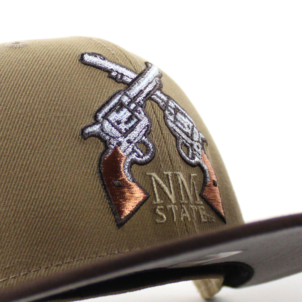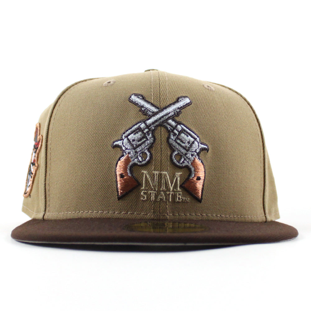 New Mexico State University Aggies Vamos New Era 59Fifty Fitted Hat in Khaki and Walnut Brown with a Gray Under Brim.