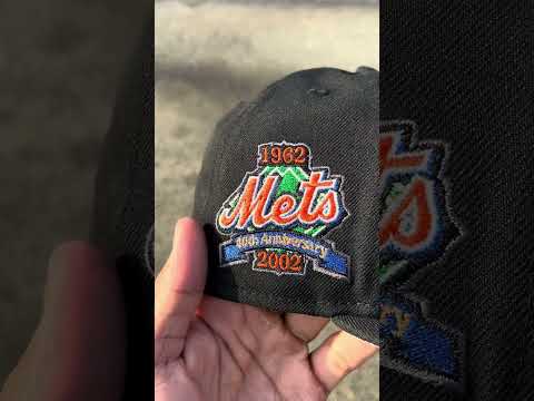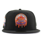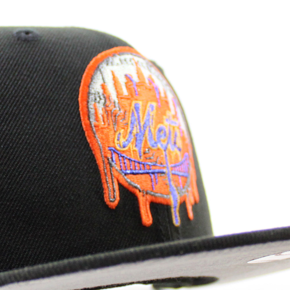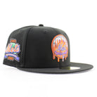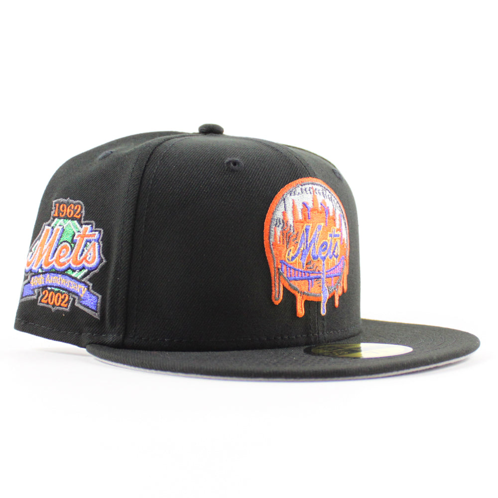 New York Mets (Drippy Logo) 25th Anniversary New Era Fitted Hat in Black and Gray Under Brim. Logo Glow in the Dark