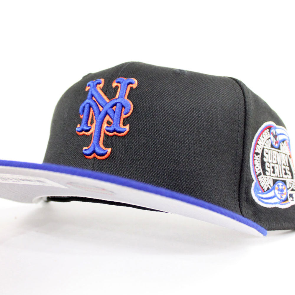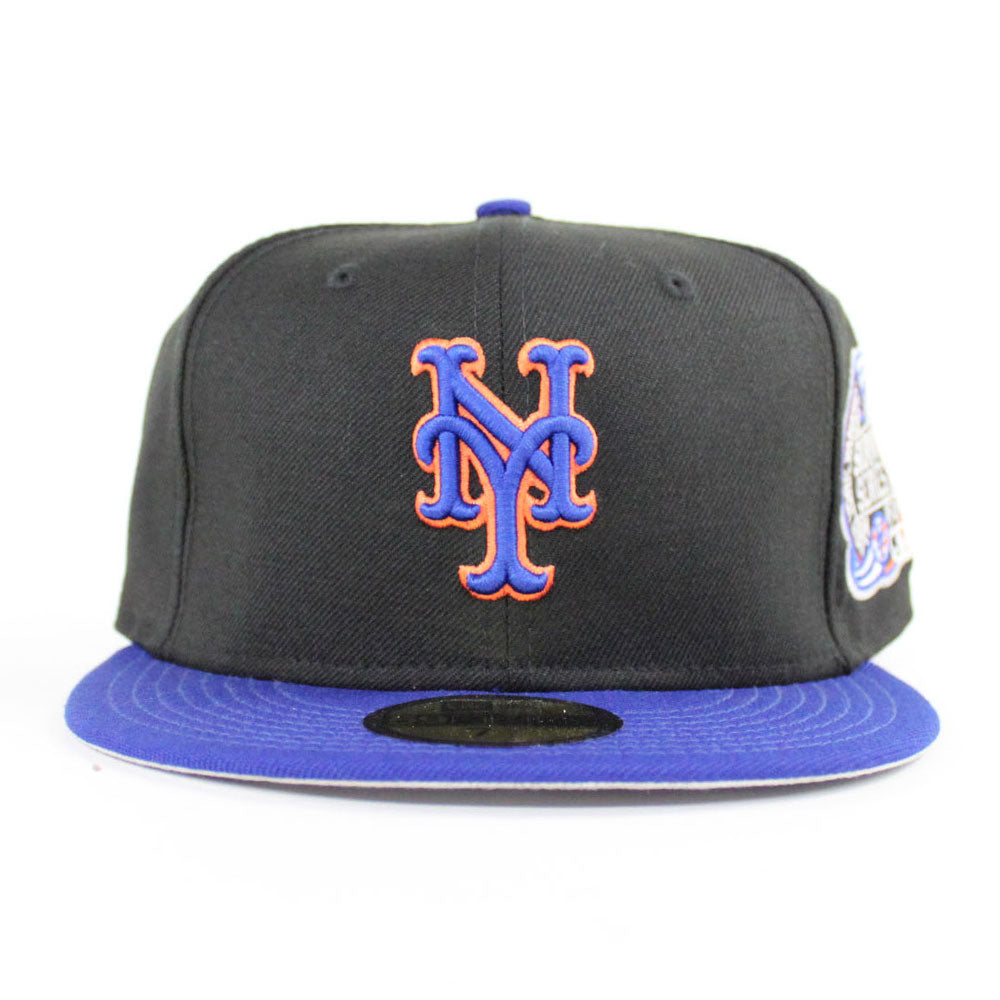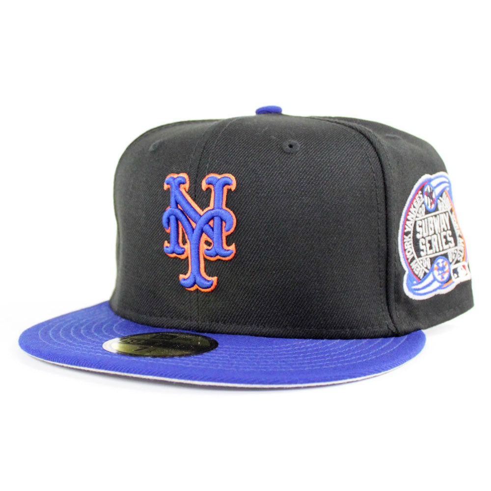 Road New York Mets 2000 Subway Series New Era Fitted Hat in Black & Blue with Gray Under Brim.