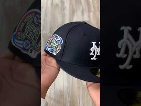 New York Mets 2000 Subway Series New Era Fitted Hat in Yankees Color Way Navy with Gray Under Brim.