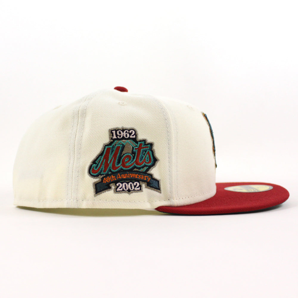 New York Mets 40TH Anniversary New Era 59Fifty Fitted Hat (CHROME WHITE PINOT RED PINE NEEDLE GREEN Under Brim)