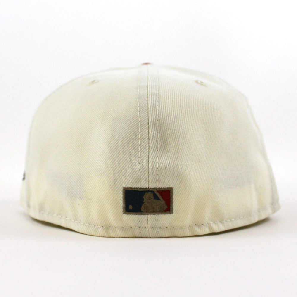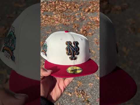 New York Mets 40TH Anniversary New Era Fitted Hat in Chrome White, Pinot Red and Pine Needle Green Under Brim.