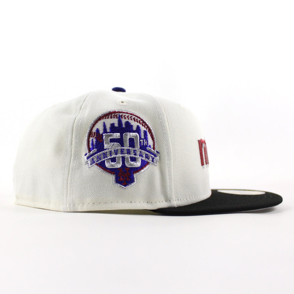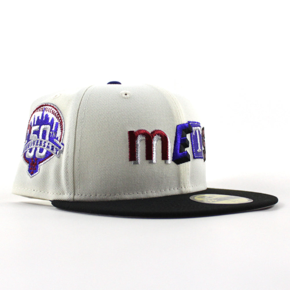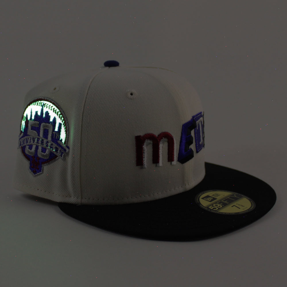 New York Mets DeathNote Logo 50th Anniversary New Era 59Fifty Fitted Hat (Chrome White Black Gray Under Brim)