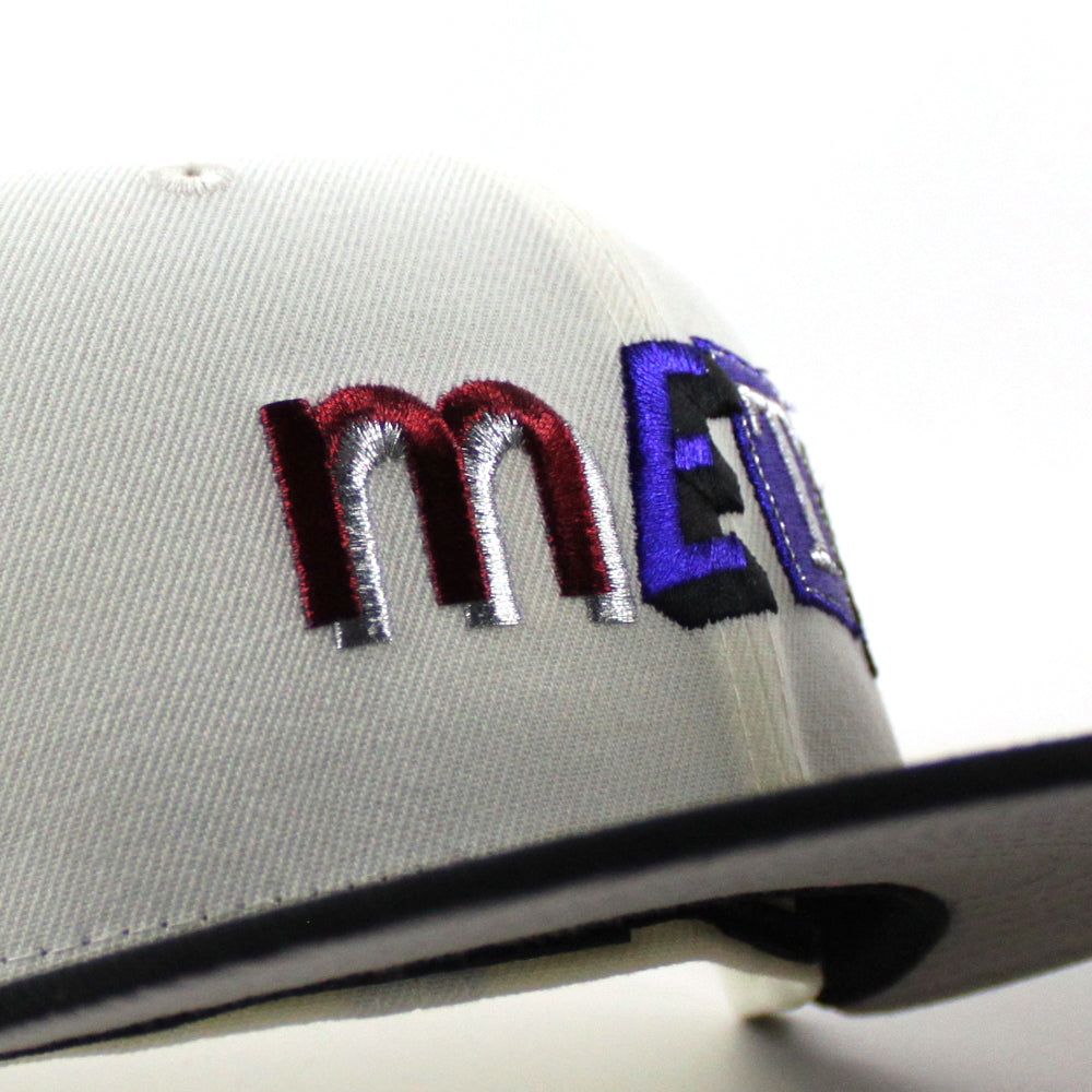 New York Mets Death Note Logo 50th Anniversary New Era Fitted Hat in Chrome White, Black and Gray Under Brim.