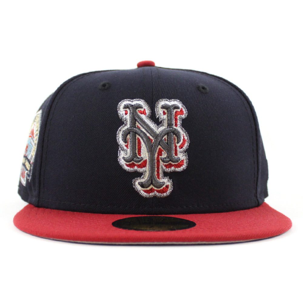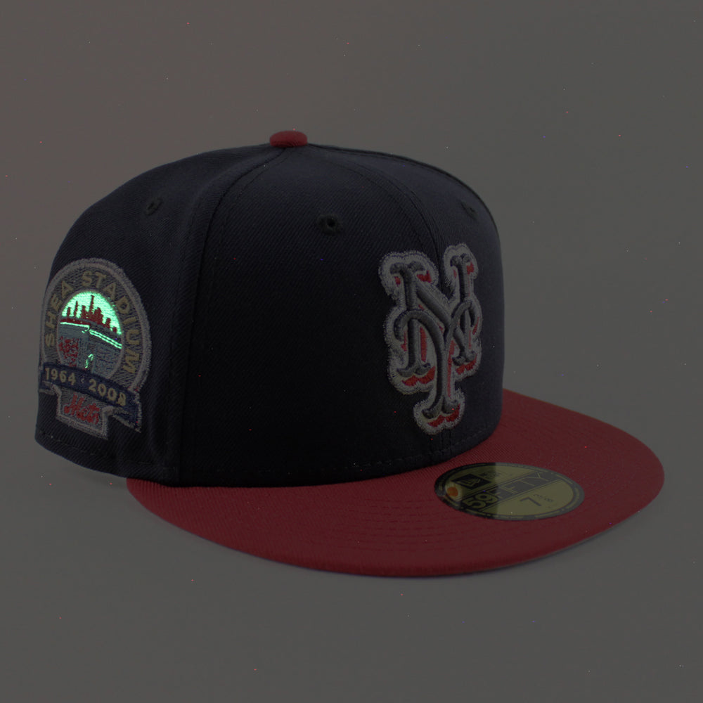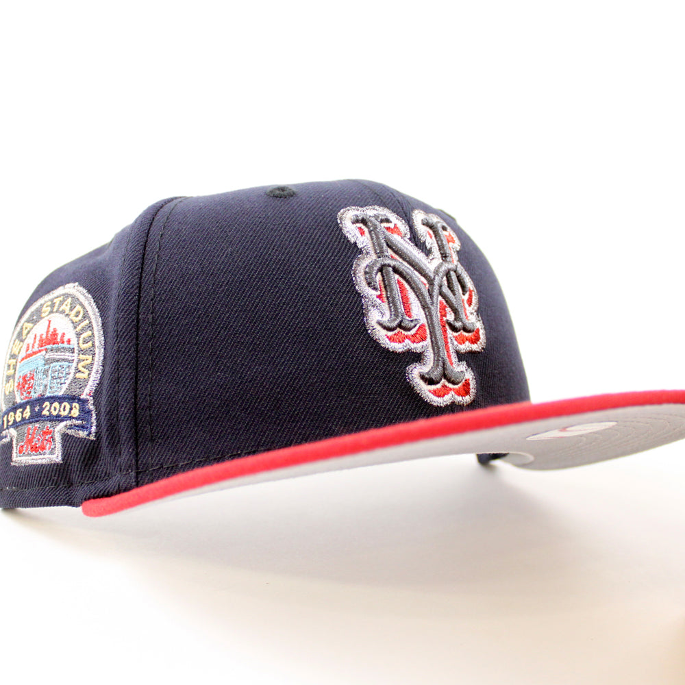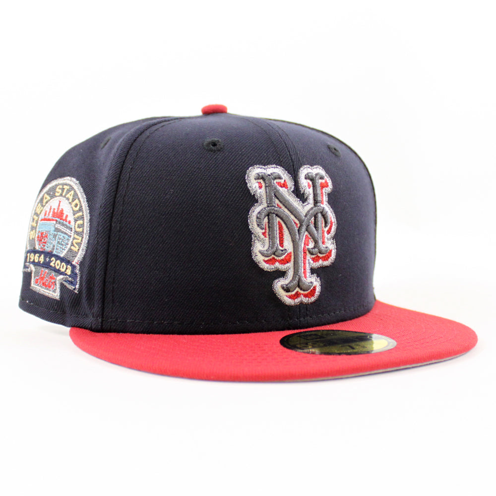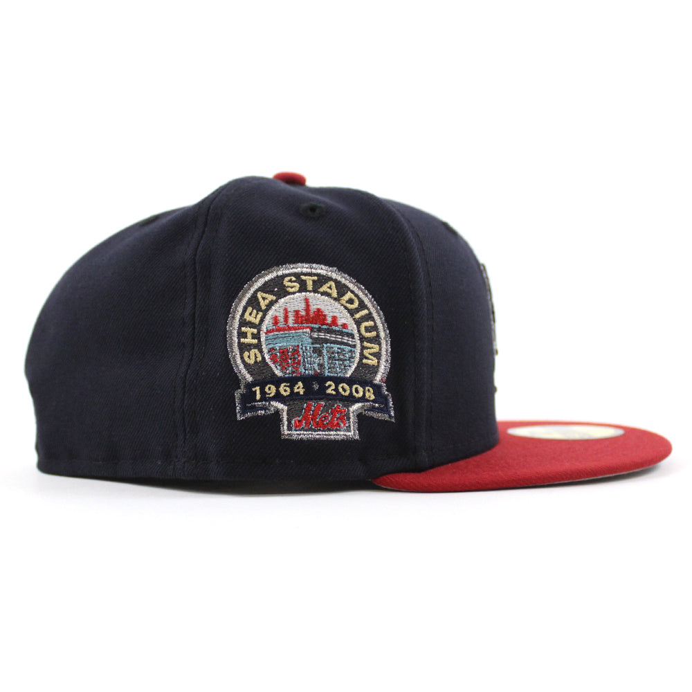 New York Mets Shea Stadium New Era Fitted Hat in Navy, Pinot and Gray Under Brim.